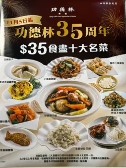 功德林35週年,凡於功德林消費滿$1000,即送$350現金券(送完即止)