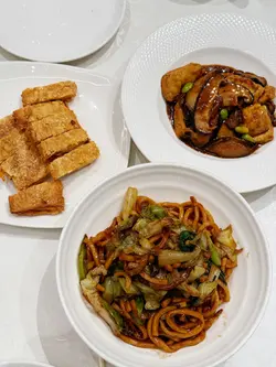 最近忽然谂起去食斋,捉咗朋友仔去功德林食。铜锣湾分店环境好开阳。去到见到原来而家做紧35周年优惠,有好多款名菜$35,几抵食,我哋拣咗上海粗炒,份量都好多,味道唔错!仲见到佢有啲秋冬滋宝素菜,云吞鸡、羊腩煲等等嘅菜式都有!今晚饮咗一个竹笙百合炖北虫草汤,味道非常清甜,饮落去成个人都觉得好滋补好舒服,非常推介。牛肝菌焖豆腐都好食,味道都几浓郁,送饭一流。脆皮素鹅香脆可口,大家都钟意食!买单𠮶时发现原来依家庆祝35周年, 惠顾满$1000送$350现金券,下次多啲人可以再嚟食。