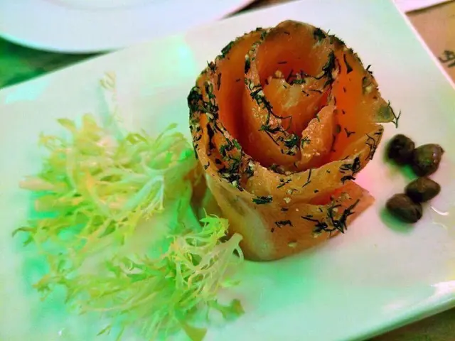 餐廳內有好多好多佈置,暗黑嘅環境都幾好feel~我地點咗兩個餐,前菜有兩個選擇,一係炸蝦,一係salad,我地都選擇咗salad~佢有紅同青椒喺裡面,唔係我鍾意食嘅嘢!