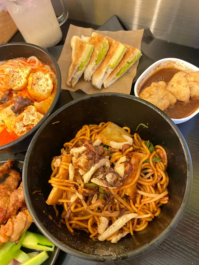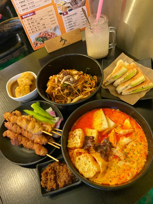 打工人午餐!提到東南亞菜我一定會來這家,從中環走去上環十多分鐘,每次來都要點🙋🍜正宗叻沙好愛這口湯底呀,老闆親自煮,湯底現熬,大老遠就聞到香味了。蝦/鮮蛤/魚片/雞蛋/豆腐料好足,這家是我見過唯1⃣️家有放螄蚶的laksa,新鮮✈️到港,太鮮了🍜正宗蝦面乾撈喜歡乾撈的不能錯過這碗!乾拌面很有勁道,蝦、肉片、魚片、排骨還加了各種㊙️制醬料,我一個女生都能幹完一大碗😂太好吃!量真是大性價比槓槓的🍢沙嗲串燒蘸醬好厲害!鮮香帶甜相當開胃!金色相當誘人,老闆自串親自醃制,肉質軟嫩多汁,一口下去太滿足🥪咖央多士厚厚的黃油外麵包裹著咖央,甜而不膩,配上招牌薏米汁冰冰爽爽很夏天🧊查看更多