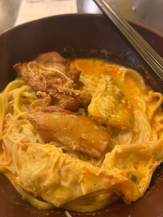 見網誌飲食平台嘅評語唔差,所以一直想去試。試完後,小女子覺得幾伏吓… 我叫咗個雙拼喇沙油麵,揀咗炸豬扒同腐皮墨魚卷。送餐後,我見到碗麵眼都凸埋…. 賣相唔吸引,有少少似食淨咁… 炸豬扒唔可以用塊嚟形容… 係一少片,係一少片呀!仲要有一大舊係肥膏… 腐皮魚卷就正常一條。以下午茶呢個價錢嚟講,佢偏貴得嚟份量又少… 味道又唔係特別出色,以呢個價一定有更好嘅選擇。可能佢係賣湯底出色?只可以講小女子當日唔好彩,食唔到如網評所講嘅應有水準囉。又或者係各人口味大不同,不能一概而論吧。查看更多