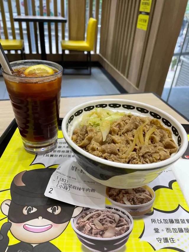 下午茶時間badboy同朋友去咗加藤屋食tea,第一次幫襯,badboy係近幾個月先知有呢間嘢🤫🍘加藤豚肉飯(細)$29+$10日本南瓜薯餅(追加)因為係下午茶餐,所以都預咗肉唔會多,飯都會少啲,所以追加咗份薯餅。餐飲揀咗玄米茶,好似健康啲🤭豚肉出奇地幾好食,口感嫩滑爽口,醬汁簡單但好味,同豚肉好夾。醬汁夠撈勻成碗飯,三扒兩撥badboy就食完碗飯😋然後南瓜薯餅又係另一驚喜,食落似蕃薯嘅甜味多啲😳完全無平啲食開嗰種南瓜獨有嘅味道。薯餅熱辣辣好脆,好好食😋🍛鐵板香草腸配午餐肉飯$54朋友揀咗咖哩味,賣相好吸引,幾好食但+$3有埋芝士會更加正🤭…查看更多