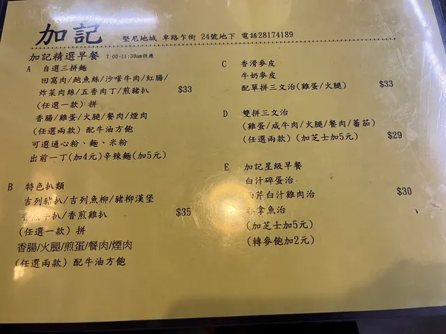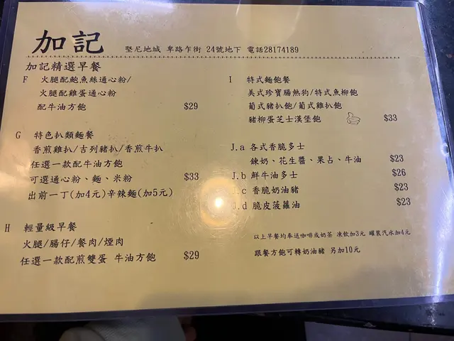 都好耐冇嚟呢問位於西環卑路乍街既加記食野,今日午餐時份咁啱有時間嚟到附近,就一於入去食個午餐。佢地午餐時段近符Full house,但我一個人都可以攝入去同人搭枱坐。牆上既手寫餐牌好潦草,差d就睇唔到佢寫咩!我點咗個咸魚蓉煎肉餅,隨餐跟白飯一碗,花生眉豆豬骨湯一碗同埋飲品一杯。個肉餅煎得唔錯,外脆內嫰,食落去仲有一陣淡淡既咸魚味,好味道,雖然唔大塊,但都夠我餸成碗飯。[米饭]口味:🥚🥚🥚🥚[薄荷]环境:🥚🥚🥚[服务铃]服务:🥚🥚🥚[糖果]性价比:🥚🥚🥚…查看更多