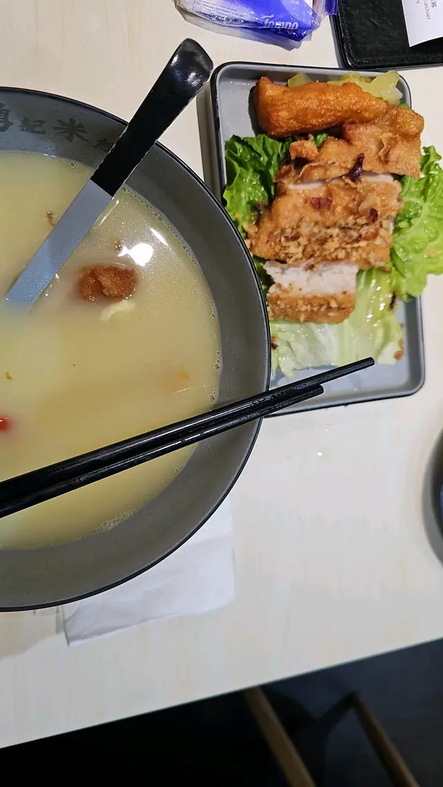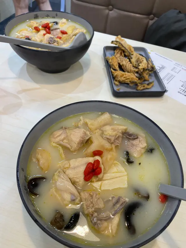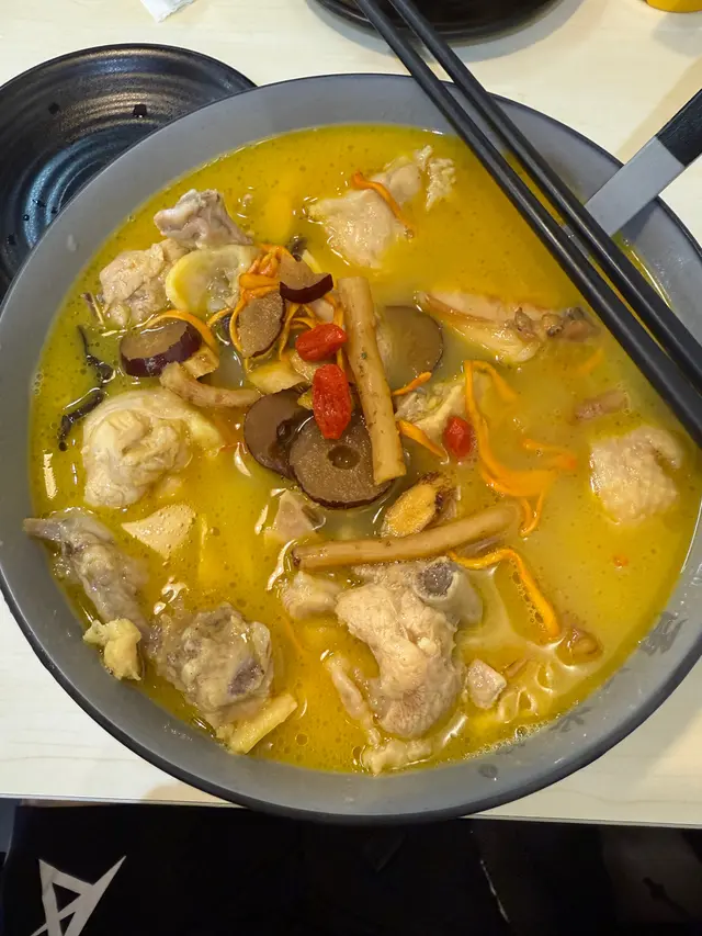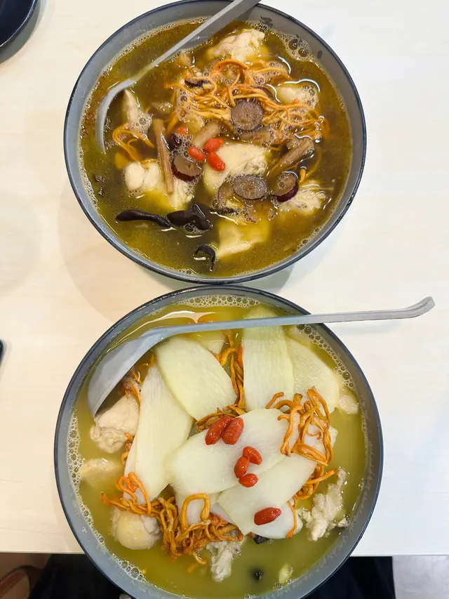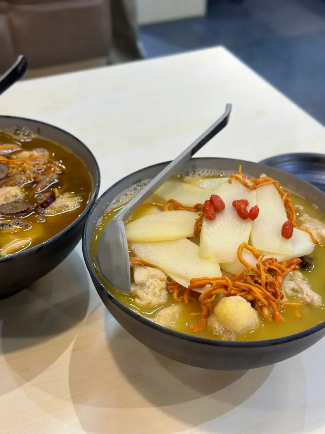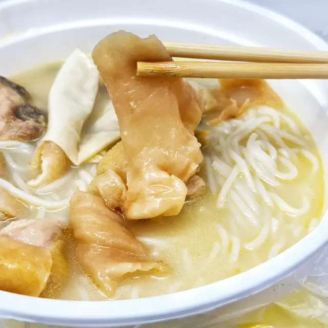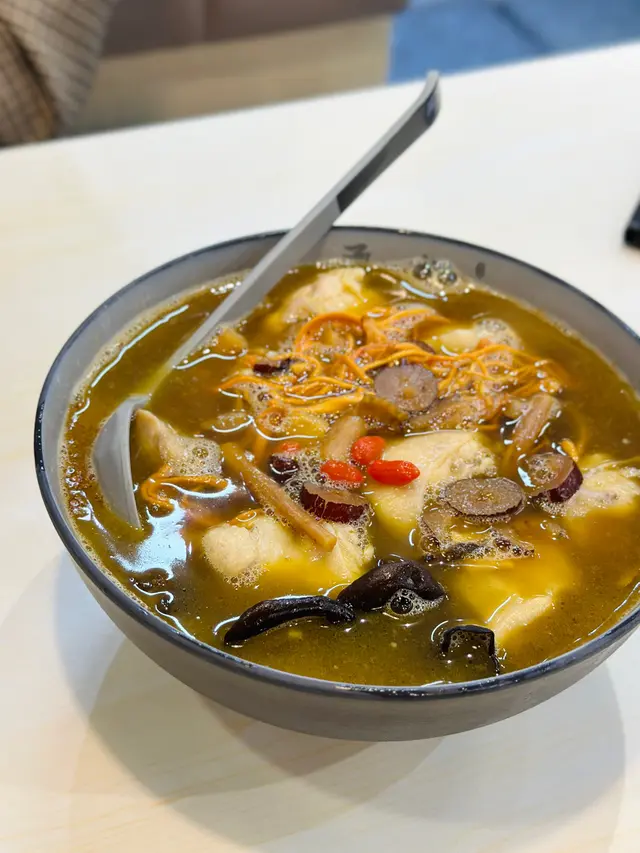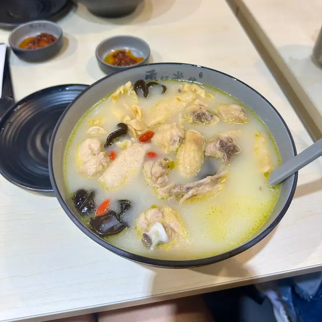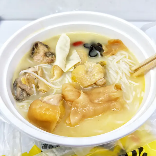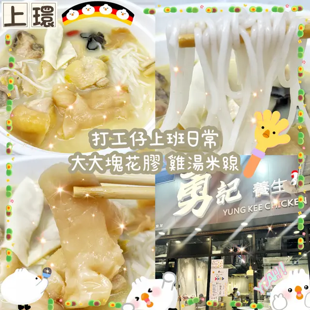 勇記海南雞團隊從海南雞轉戰雞湯米線,於上環開設勇記養生雞湯米線。店內的靈魂雞湯湯底,以雞殼、雞腳和雞長時間熬煮而成,濃郁呈奶白色,不加味精,真材實料。黃酒藥膳雞米線 藥材下得毫不手軟,湯底入口帶有黃酒香氣與甘甜,養生感十足。雞件保持海南雞店水準,嫩滑且雞味濃郁,唯獨米線幼身口感偏軟,如果偏愛煙韌米線,建議改配白飯,做成湯飯一樣令人滿足。The soul of Yung Kee Chicken Noodles is its rich chicken broth, simmered for hours with whole chicken and chicken feet and no added MSG. Their Huangjiu Medicinal Chicken Noodles feature a medicinal broth with a sweet, aromatic flavor. The chicken is tender and rich, but pairing it with rice might be more satisfying as the mixian noodles were a bit too soft.…查看更多