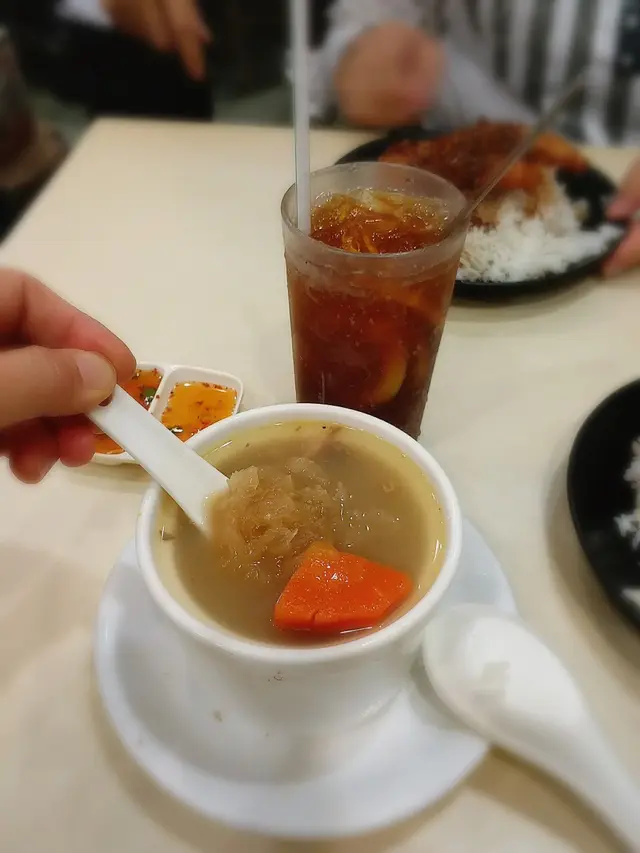 很久沒到這店, 再去宵夜,點了兩個海南雞飯餐, 首先希望其中一個餐可選雞胸, 也不介意額外加錢,但侍應回應不可以, 試過其他的海南雞飯店也可有同樣要求不同雞的位置, 這令客人非常失望。雞肉ok但沒有太多雞味, 雞油飯有點奇怪, 首先雞油的覆蓋不勻循, 飯又硬又凍,另外也應侍應介紹點了馬拉盞炒通菜, 炒出來的醬汁像一堆味精麵粉漿, 完全沒有馬拉盞炒的原味, 菜炒出來也不是熱的,只是暖, 整體來說,整餐飯也頗失望, 隨餐送的例湯是最好味的了…查看更多