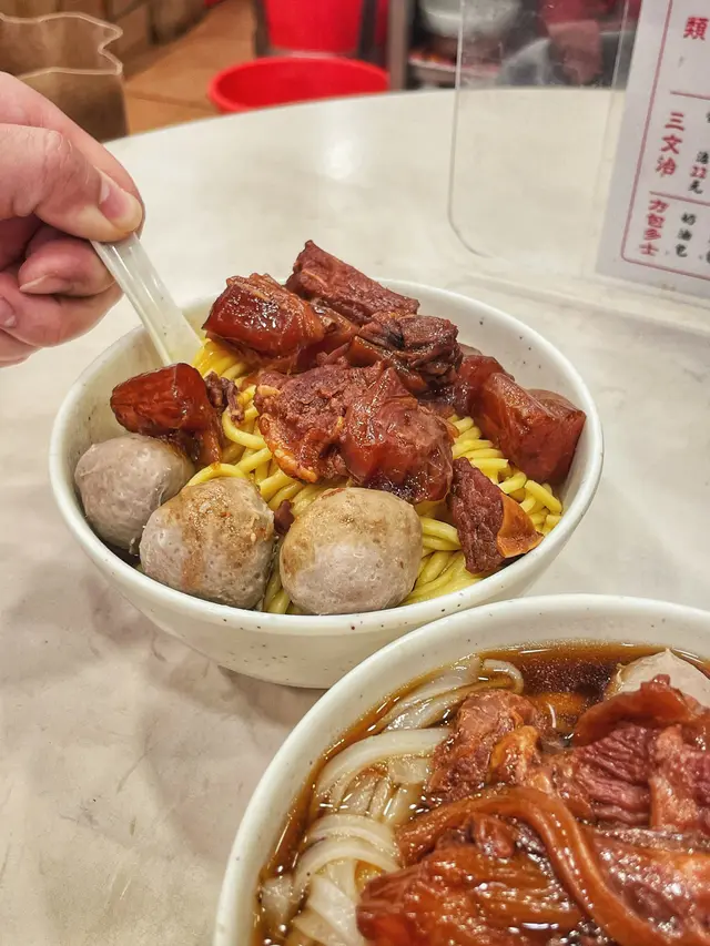 穿過元朗裕景坊嘅舊街市 呢間「📍勝利牛丸」阿公阿嬤嘅聚腳點1982年開到而家 裝修仲係舊式圓櫈鐵檯 午市依然坐滿白髮熟客👵今次就同大家拆解 呢碗承載住元朗人集體回憶嘅「🐮牛三寶」係寶定係草?【牛筋牛腩牛丸三拼🍜】牛筋×牛腩×牛丸 堆到瀉晒嘅肉量 打工仔睇見即刻眼濕濕✨ ▪ 牛筋 炆到似啫喱咁duang duang聲!膠質黏唇得嚟唔黐牙▪ 牛腩坑腩部位算靚 筋膜分明🐄 可惜炆嘅火候唔夠穩定 走水未夠徹底 有輕微嘅羶味 建議淋一匙秘製辣椒油🌶▪ 牛丸口感的確係爽彈過乒乓波🏓咬落仲噴肉汁但同潮汕牛丸比就輸蝕 牛味偏淡 似純肉筋感欠香濃油脂感▪ 湯底牛骨熬足鐘數嘅湯底 偏鹹 淡口人士建議叫「少湯走冬菜」🚨【紅豆冰🧊】杯底嘅紅豆煲到綿密起沙 似紅豆蓉裹住碎冰 甜度克制唔膩喉奶香醇厚到似食緊固體紅豆雪糕🍦 食完三拼啱啱好解鹹👍👍…查看更多