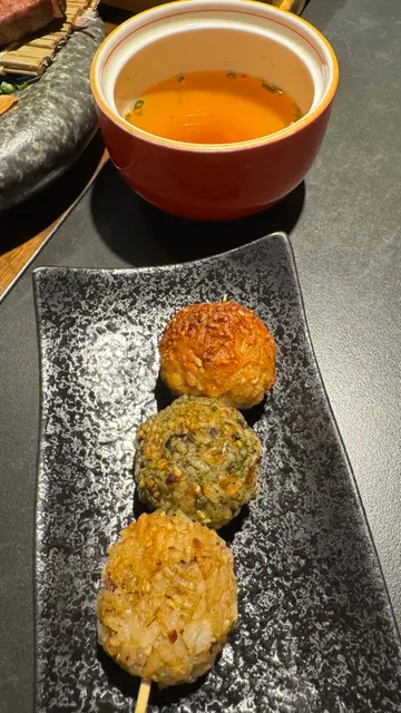 一家可以唱卡啦ok的日本菜餐厅,除大厅外,有两个一大一小的房间,小房间可容纳约6人,大房间可容约20人,朋友唱k聚会又喜欢食日本菜就最适合了!先来渍物三点盛开胃菜。然后是火炙赤身,以鲔鱼腹背交界处经轻炙,表层微焦锁住胭脂红的肉质,鱼脂化作剔透珠光,入口有生鱼片的柔嫩又有熏烧的余韵。跟著是几款串烧,盐烧手羽鸡翅外皮烤至金黄薄脆,刷上浓醇酱汁,咬开有饱满的肉汁,咸甜焦香,十分推荐!盐烧牛舌相当厚切,牛舌洒满粗盐炙烤,质地弹牙带有韧劲。盐烧豚腩肉肥瘦相间,烤至焦糖化,边缘酥脆。鸡皮仙贝透薄轻盈,洒上山椒粉提味,是听得到的香脆。脆山芋塔将条状的山芋塑成塔状酥炸。鳗鱼豆腐天妇罗是创意食物,外面酥脆,内里软绵,相当特别。火山一ロ牛是打卡之选,火山造型的盛器中藏著骰子牛肉粒,上枱时会先点火烘烧。小红梅泡烧饭团,烤过的饭团浸入柴鱼高汤,撒上腌渍红梅,温润暖和的汤汁渗入饭粒,酸香梅子解腻开胃。汤荞麦面简单美味,面质顺滑带麦香。…查看更多
