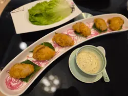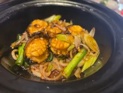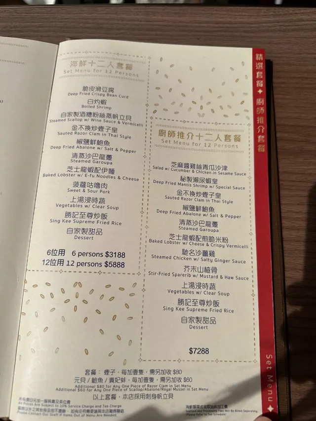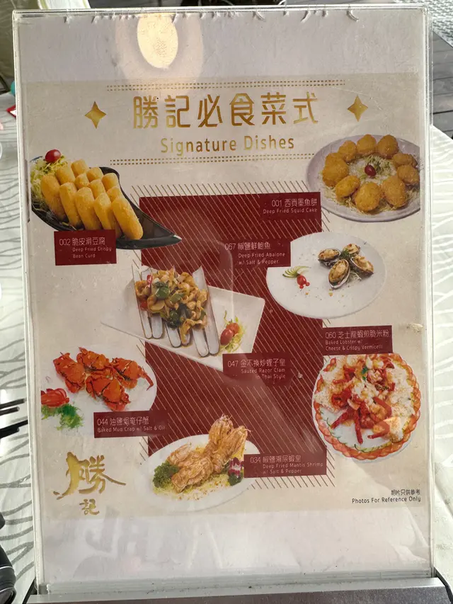 想吃到「现捞现煮」的海鲜,胜记海鲜酒家会是西贡的首选之一。依然是熟悉的红屋外观和位于幽静的街角,不过二访的心情颇为期待。毕竟同一款海鲜,使用不同的烹调方式,往往会带来截然不同的滋味和惊喜。这次先点一道肉质爽脆弹牙的 凉拌蛏子,配上蒜蓉与芝麻,吃落很清爽开胃。随后的 西湖花甲猪肉羹,入口带淡淡芫茜香气,花甲的鲜味更为突出。再加上香菇、豆腐和蛋白,让口感层次更加丰富。接著上桌的是 酥炸桶蚝生菜盏。外层炸得很香脆的桶蚝,一口咬下去就能吃到蚝肉的鲜嫩多汁。建议拿生菜连同紫苏叶、蚝包起来吃,再加上一点酸香的他他酱更有层次感。之后的 酥炸茄子 也很有惊喜。平时常见的茄子做法多半会连皮炸,入口时多少会带点纤维感。但这里的有将外皮去掉,令茄肉吃起来更加香软绵滑。这道 三葱鲜鲍鱼煲,上桌时热气腾腾,一打开盖就香气扑鼻。鲍鱼肉质厚实弹牙,吸收了酱汁的咸香味道,浓郁却不会过重而觉得腻口。不论是葱段还是洋葱,入口带点锅气,非常惹味。要说到最惊艳的,我会选 秘制斑马濑尿虾。将大大只的濑尿虾酥炸,面层有咸蛋黄,入口咸香得来带点微辣与蒜香。肉质亦很弹牙,咬开后还能看到饱满的虾膏,吃起来更惹味。吃完海鲜后,来一道 清炒荷塘上素 平衡一下。不同用料 ,口感层次分明。我自己颇喜欢爽脆带甜的莲藕片和浓郁的菇菌。平衡过后,再来一碗 鲜虾球葱油拌面。每一条面条都均匀裹上葱油,很香很惹味却不显油腻,搭配炸葱丝增添层次。放在面上的虾球亦很大只,肉质也十分爽弹。最后以胜记海鲜酒家的自家制糕点作结尾。充满乳酸香味的 益力多糕 和带微酸清爽的 柚子糕,正好为一顿丰富的海鲜大餐划上句号。…查看更多