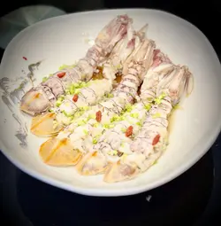 凉拌鲜鲍鱼爽滑弹牙,带有微酸的开胃滋味。