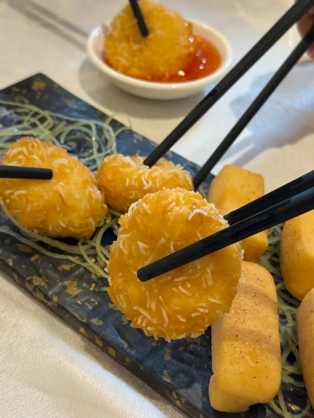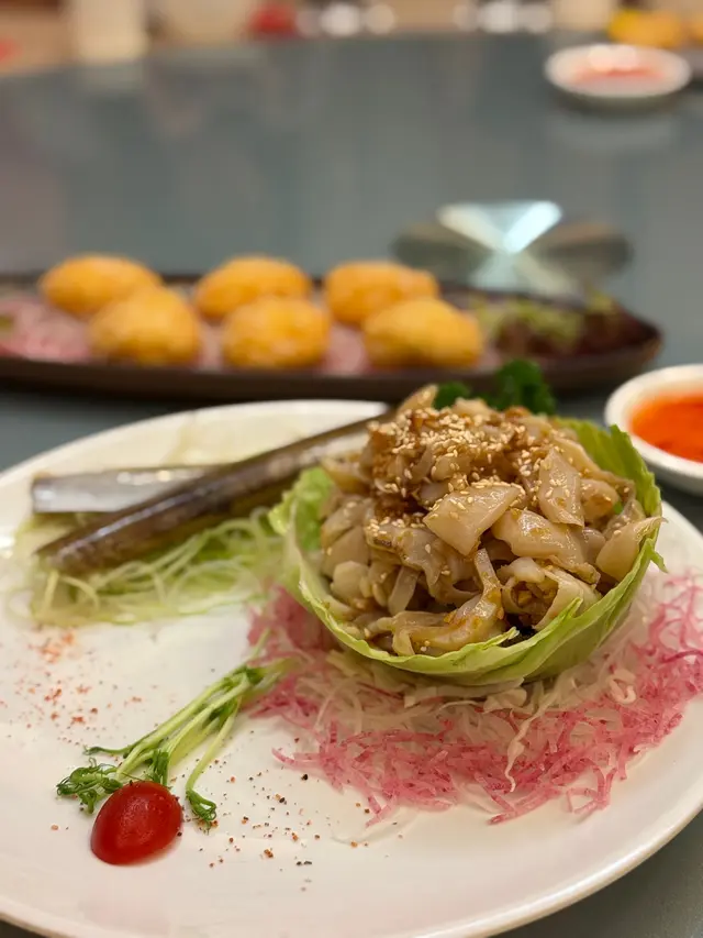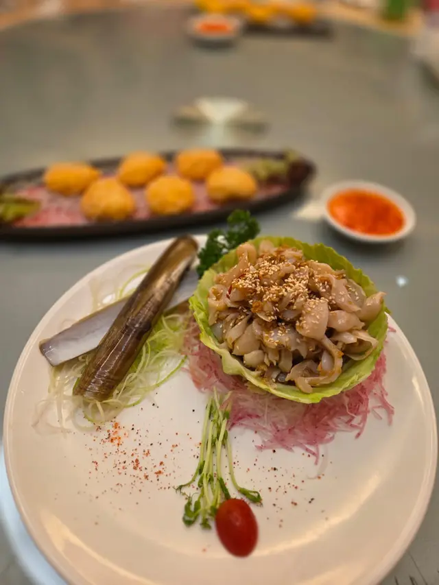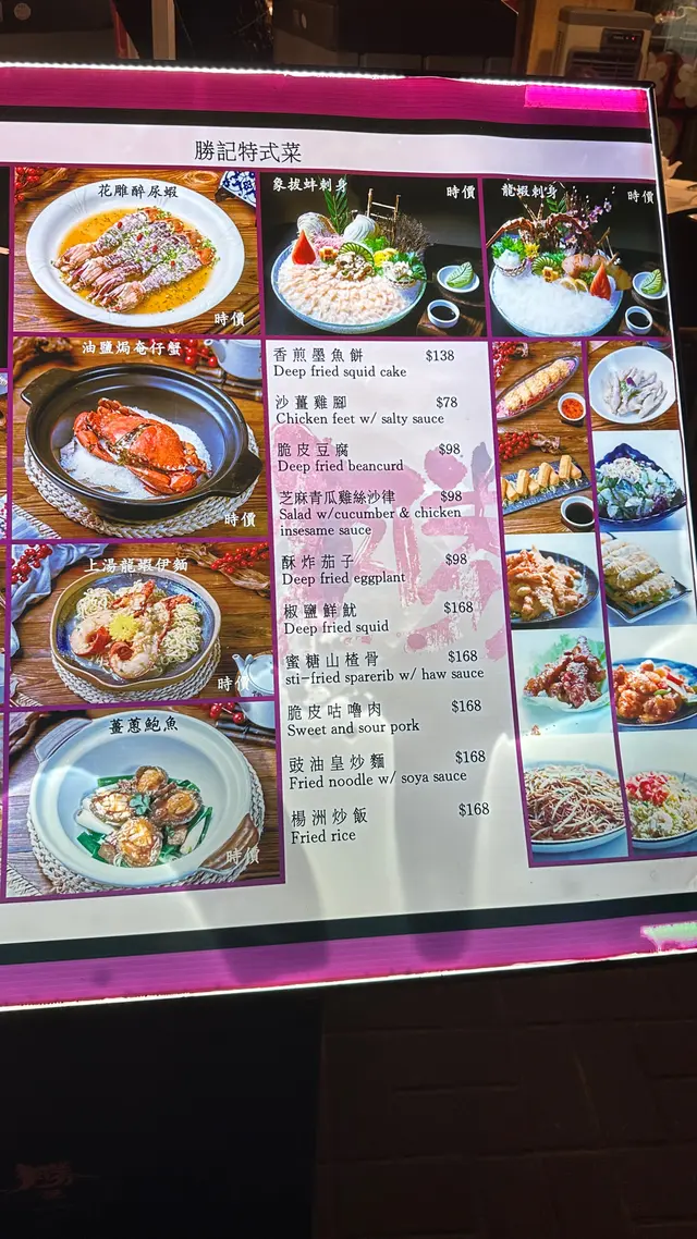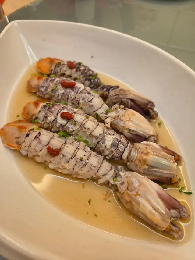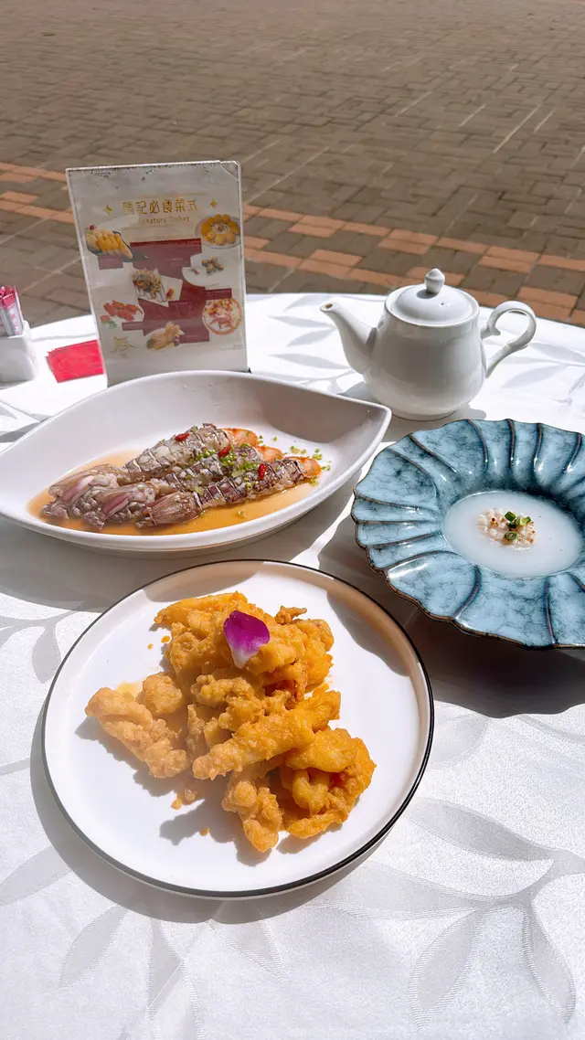 趁黃金周完咗,西貢少咗遊客,約埋朋友去勝記食返餐海鮮大餐,真係一流!😋🦐🦑🥢 涼伴蟶子王麻油香撲鼻,冰涼爽口,作為頭盤非常開胃,食完即刻期待下一道!🧆 金黃炸墨魚餅外脆內嫩,香味十足,未入口已經聞到香氣,咬落去甜美又彈牙,超有驚喜!🍲 西湖花甲牛肉羹啖啖都係料!豆腐、牛肉、花甲肉完美融合,鮮甜得嚟又夠暖胃,秋天飲一碗真係幸福。🍶 花雕酒醉瀨尿蝦蝦肉鮮甜,酒香恰到好處,唔會搶味,反而提升咗整體層次,浸得好有心機!🥬 炸桶蠔生菜盞配他他醬炸得香脆又唔油膩,配埋爽口生菜同酸甜他他醬,真係一啖接一啖!🦞 泰式糟池龍蝦伴脆米粉主角竟然係炸得香脆嘅新竹米粉!配上椰香濃郁嘅泰式紅咖哩汁,太好食啦~我哋竟然食晒米粉先記得食龍蝦🤣🍚 米湯浸勝瓜用米湯代替高湯,令勝瓜吸晒米香,清甜得嚟又有層次,簡單但好有心思!🍃 鮑魚瑤柱荷葉飯遠睇似糯米雞,近睇係驚喜!荷葉香滲入每粒飯,鮑魚、冬菇、蝦料足到爆,食完仲想encore!🍮 自家製甜品:益力糕多 & 柚子蜜糕柚子蜜糕入面有柚子肉,口感豐富又清新,比起平時食嘅桂花糕更有新鮮感!👨🍳 每一道菜都食得出廚師嘅心機,唔止係海鮮咁簡單,係一場味覺盛宴!📸 …查看更多