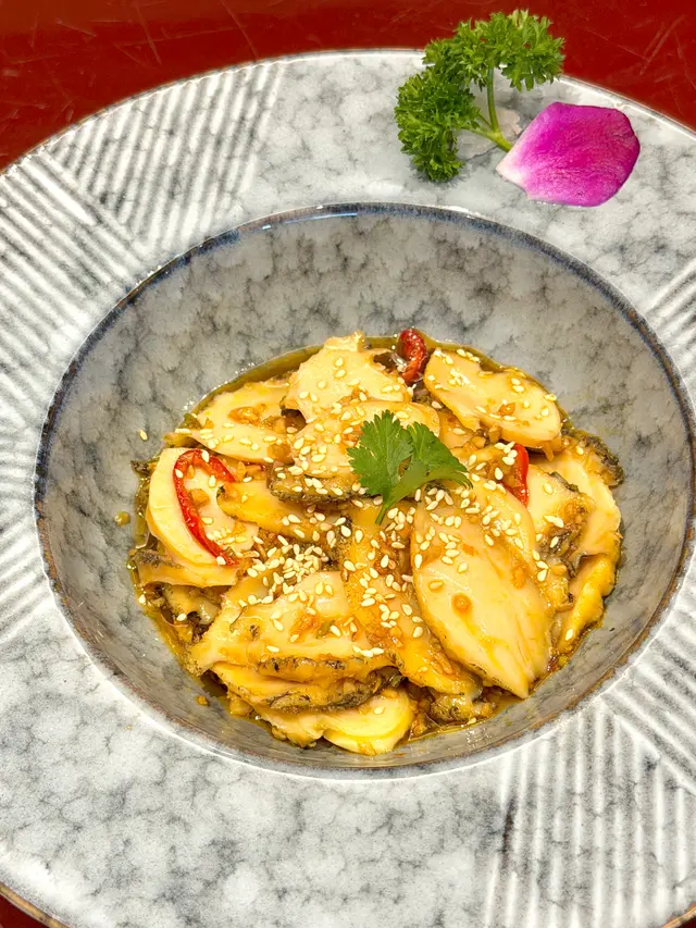 涼拌鮮鮑魚爽滑彈牙,帶有微酸的開胃滋味。