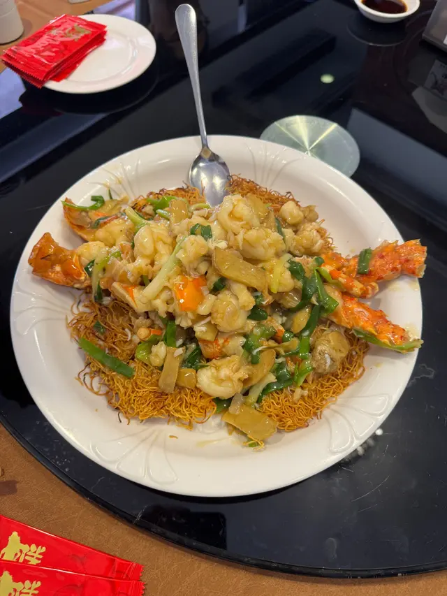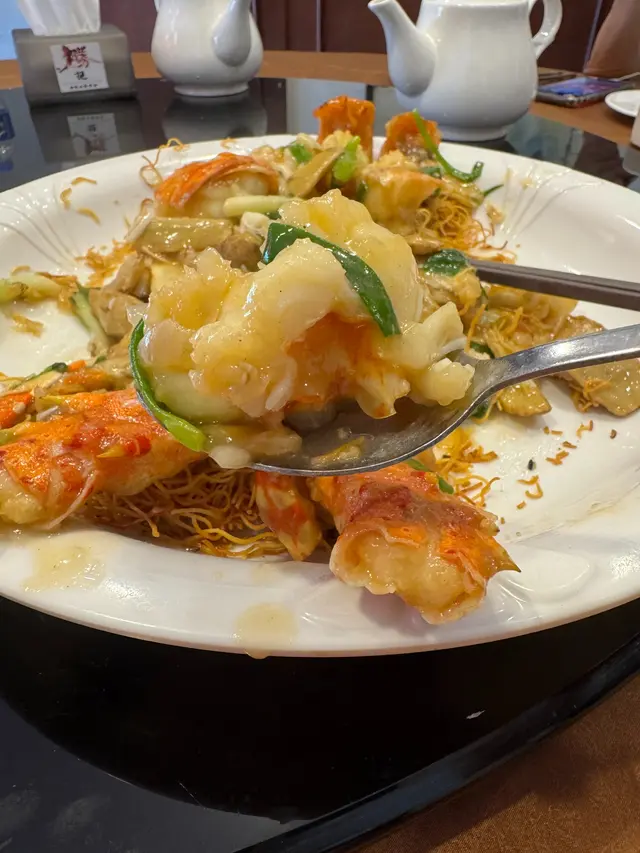 薑蔥龍蝦伴脆麵更是全場焦點,即叫即炒上桌時香氣四溢,龍蝦肉鮮彈,脆麵吸盡醬汁精華,吃得又香又滿足。