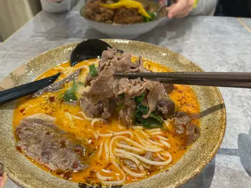 胜面系台湾过江龙餐厅 主打非一般嘅麻辣牛肉面 餐牌都几多选择🫡-台式盐酥鸡卤肉饭盐酥鸡都够脆 好够椒盐味 几滑😋 啲饭偏淋身 个卤肉汁唔会太过咸👍🏻👍🏻 卤肉就正常 无话特别滑🫠 有细细粒冬菇 好淋同好滑😗 饭就唔算好多 不过有好多𩠌❤️🔥 -招牌麻辣·牛三宝 $88 有得拣汤面/ 拌刀削面/ 汤饭 而汤面有关庙面/ 新竹米粉/ 手工刀削面👍🏽 拣咗关庙面 感觉似淋啲嘅拉面😂 如果想啲面淋啲/ 硬啲可以提早同侍应讲👌🏻 面就唔算多 但真系有好多𩠌😋 牛三宝分别系牛颈脊肉,牛颊肉同牛腱心 三款都好重牛香味 可以同时间试晒三款口感嘅牛肉🥰 辣度方面 少辣都算辣 偏油🥱 另外配有豆腐同鸭血 豆腐系𠮶啲蜂巢豆腐 鸭血好滑同几入味 充满台湾风味❤️🔥-抹茶欧蕾熔岩食完个面要饮返啲嘢解腻😋 呢个饮品超重奶味 有好大旧布丁🍮 旧布丁几滑 而啲绿茶味中和返布丁嘅甜味 虽然绿茶味可以再多啲 不过整体嚟讲几好饮👍🏽…查看更多