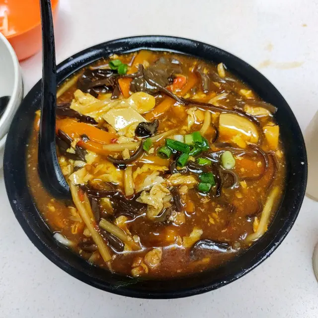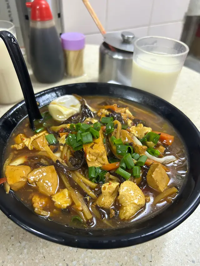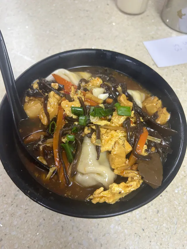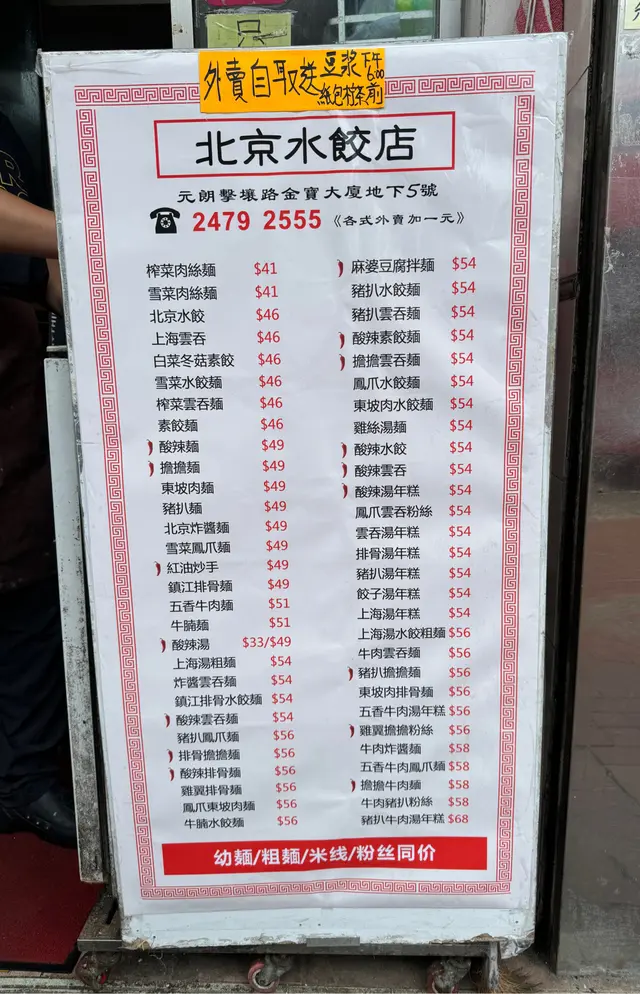 近年喺元朗返工,有時會買外賣返公司食。最近喺元朗廣場對出巴士站附近搵到一間幾有風味的京菜小館,menu都有好多選擇,佢有雲吞同水餃,問咗老闆,原來雲吞係白菜加豬肉餡,而水餃係韮菜加豬肉餡。我今次就試吓酸辣湯水餃麵先。外賣自取送盒裝檸檬茶或凍豆漿,我要咗凍豆漿。我唔太食得辣但又想試吓酸辣湯,有凍豆漿中和辣味就啱晒喇😆酸辣湯水餃麵 —份量超多!無論是酸辣湯的配料或麵底麵有好多,而水餃都係好大隻,總共有3大隻。.水餃有好多餡,韮菜及豬肉的比例好平均。水餃皮唔算薄但好滑溜,好好味。.而酸辣湯配料非常豐富,有豆腐、豬紅、肉絲、木耳、荀、紅蘿蔔。湯底酸辣濃度啱啱好,唔會太酸或太辣。就算我唔太食得辣都可以食到,覺得幾刺激幾惹味。.今次呢碗酸辣湯水餃麵我好滿意,下次再嚟試吓其他菜式先😋查看更多