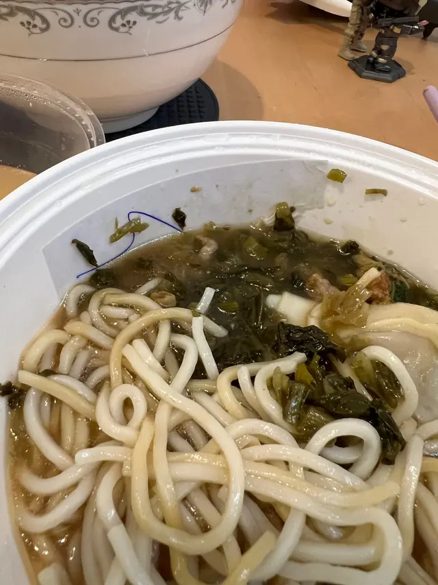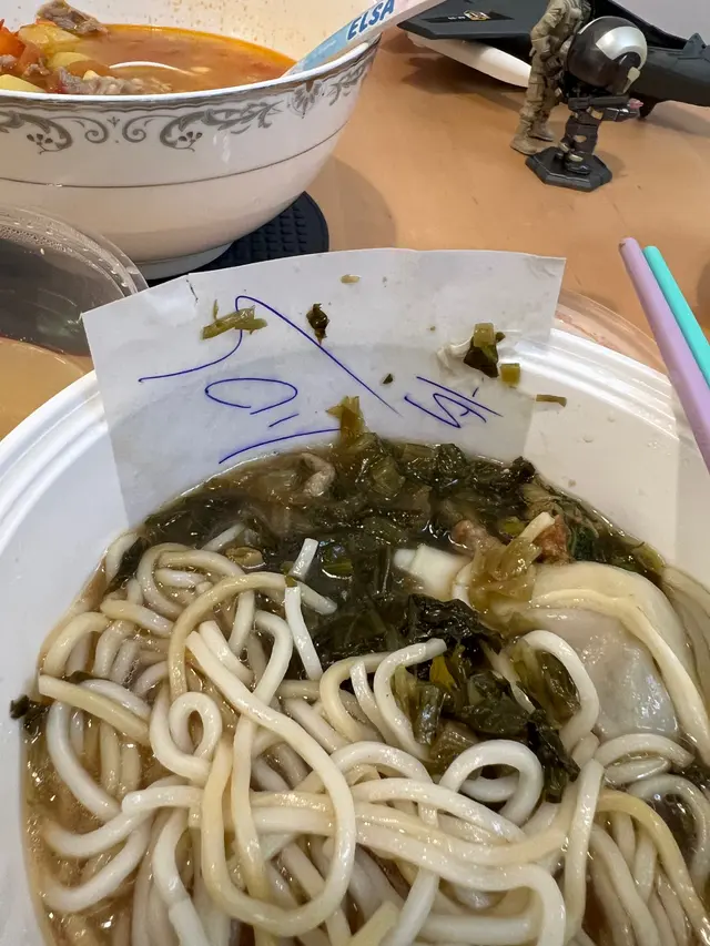 叫左個麵外賣,返到屋企食食下發現成張手寫單融入喺個面到,攞返上嚟啲字化晒。。。最後都係唔敢再食,放棄。希望舖頭下次注意下衛生。唔好放啲手寫單入個外賣盒入邊。原子筆應該係有毒。。。查看更多
