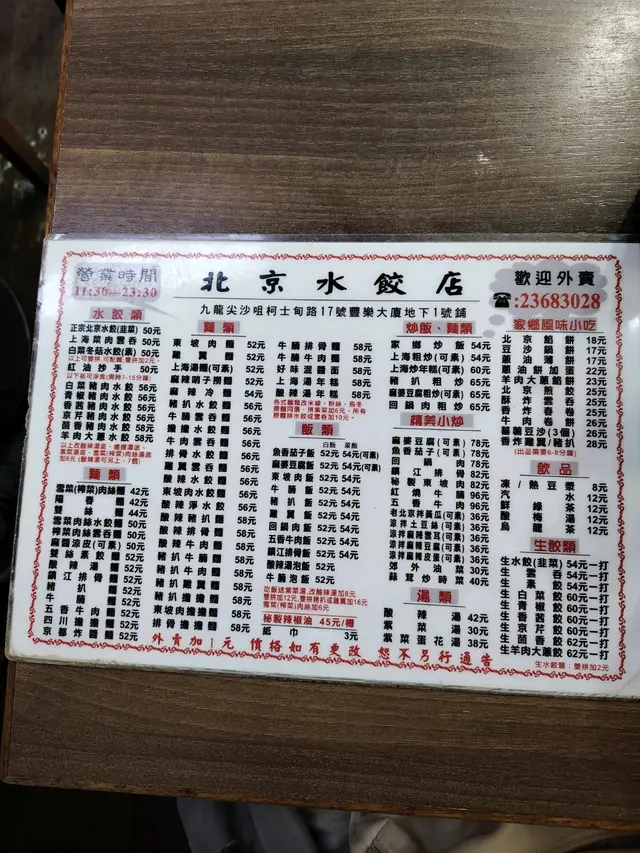 北京水餃店 (尖沙咀) 网址: https://s.openrice.com/QrLS0xrS800 地址: 香港尖沙咀柯士甸路17號豐樂大廈地下1號舖 电话: +852 23683028