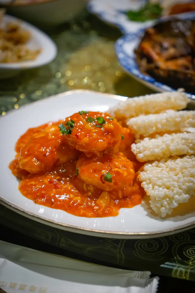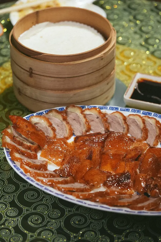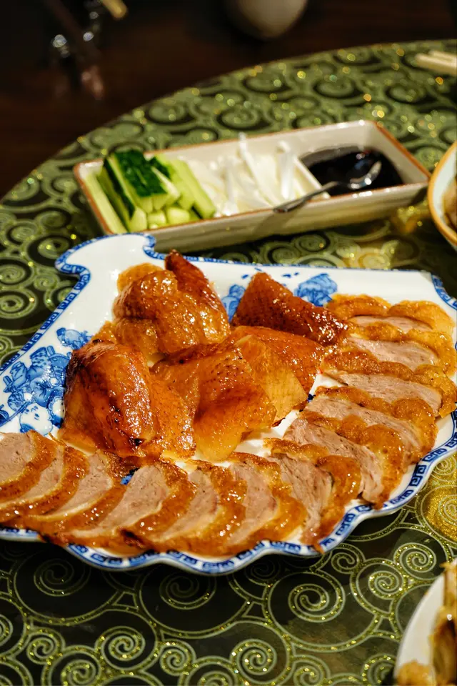 用上當造嘅柚子🍊,配搭酥脆香口嘅桂花魚,魚肉嫩滑,配合清香酸甜嘅柚子醬汁,味道清新又開胃🐟招牌菜式⟡‧₊ 北京烤鴨 $290/半隻鴨隻經過風乾用木火慢烤,鴨皮香脆,肉質半肥瘦,油香感唔太重,配薄餅、京蔥同甜醬係經典嘅食法。鴨肉份量比薄餅多,如果想添加餅可以同服務員追加~🦆⟡‧₊拔絲咕嚕肉 $268全晚最打卡嘅菜式📸 拉絲糖漿包住肥瘦適中嘅咕嚕肉更突出當中嘅甜味。不過單吃也不錯。記得要趁熱食先有最佳口感!⟡‧₊老家醉雞 $128