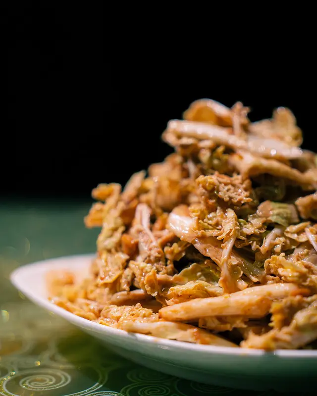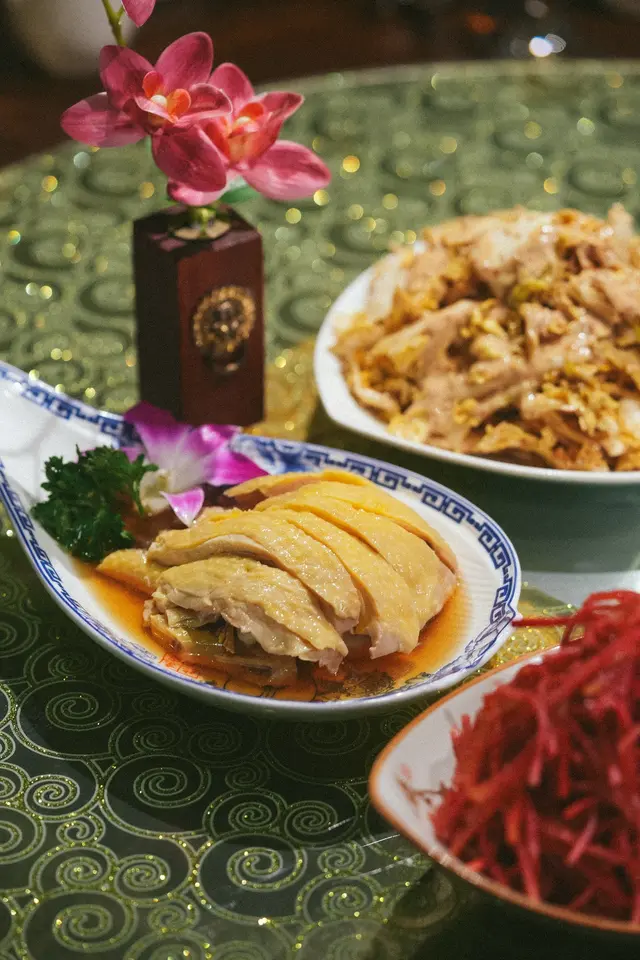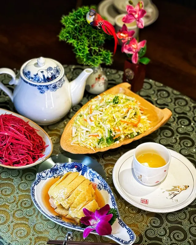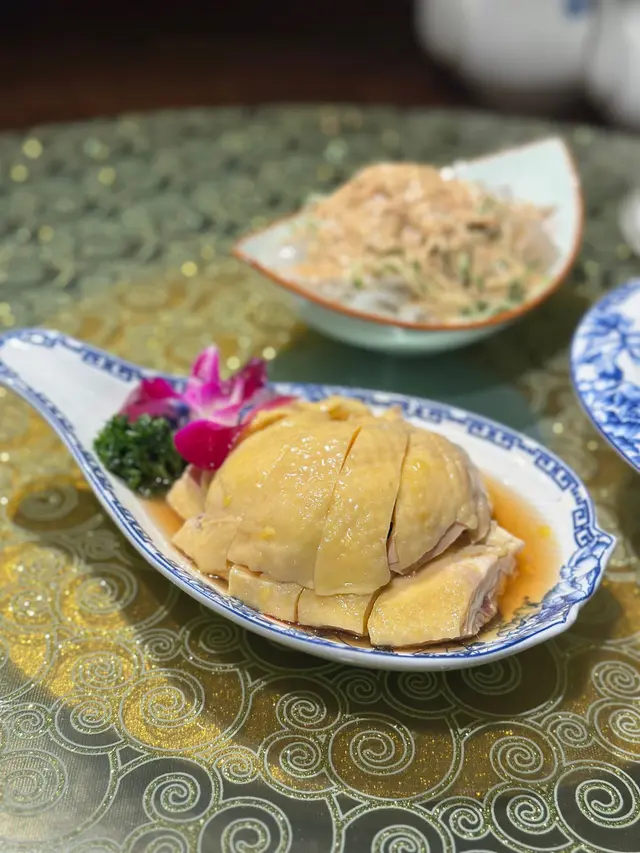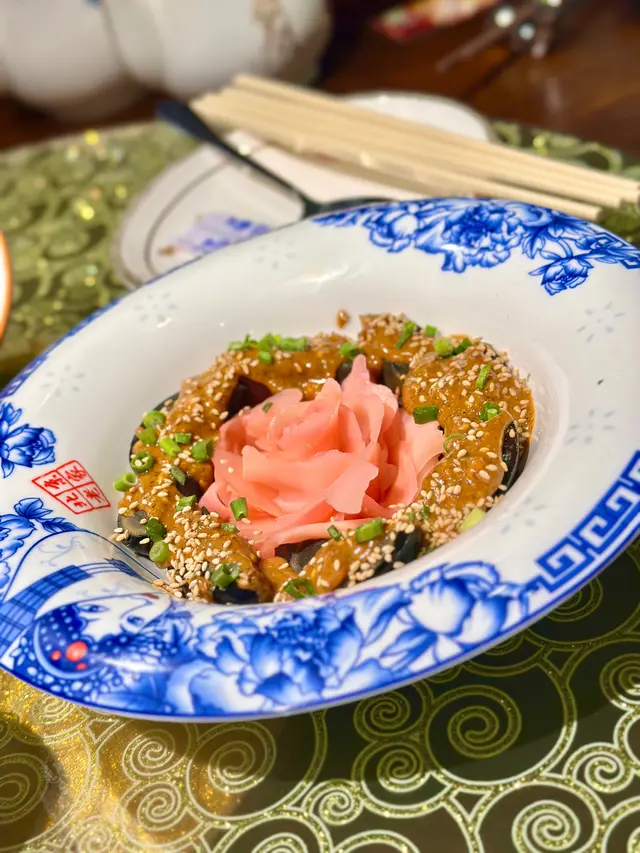 北京老家聽過好多次今次同朋友聚餐終於嚟食到啦雞絲粉皮| 粉皮滑而不黏,搭配細嫩的雞絲,撈上麻醬,口感極佳。玫瑰酸薑皮蛋| 酸薑砌成玫瑰花,超靚,皮蛋加上餐廳獨特辣醬,一口酸香辣老家醉雞|適合夏季嘅冷盤菜,醉雞玫瑰露酒香濃郁,雞肉入味多汁北京烤鴨|招牌!皮鴨金黃酥脆,半皮半肉,多汁鮮嫩,蘸上烤鴨醬,好食拔絲咕嚕肉| 咕嚕肉精選梅頭部位,入口彈牙啖啖肉,拔絲造型誇張打卡, 咕嚕肉沾上拔絲同吃,味道更加香甜宮廷花椒薔薇雞|皮脆肉滑貴妃燈籠蝦|茄子包裹蝦香炸,金黃香脆正宗大閘蟹黃拌麵|蟹上好似瀑布咁淋上麵條上,咸香好味宮廷狀元糕|以棗泥製作,入口鬆軟,散發天然甜香查看更多
