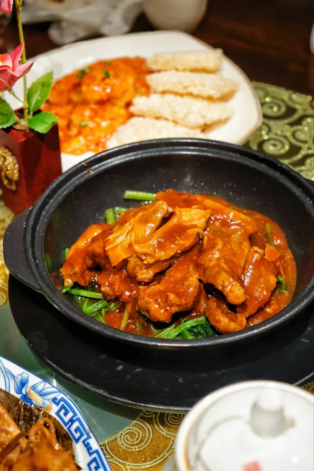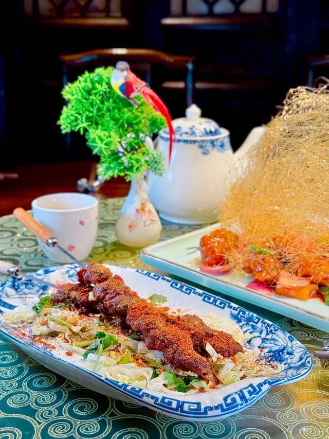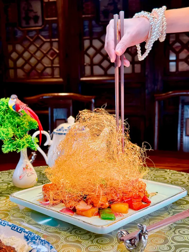 🦆【北京烤鴨】琉璃般酥脆的鴨皮,師傅現場片鴨的儀式感十足,捲上薄餅一口吞下~這就是皇城的味道!🍶【老家醉雞】冰涼酒香滲入滑嫩雞肉,是連娘娘都會搶著吃的開胃冷盤!🐟【柚子桂花魚】(9-10月限定!)黃金季節才有的鮮美!柚子清香完美中和魚肉的濃郁,口感層次堪比宮廷御宴~🍢【香烤羊肉串】炭火炙烤的孜然香氣,彷彿帶你闖入塞外草原~🍍【M+拔絲咕嚕肉】糖絲拉開的瞬間全桌驚呼!酸甜酥脆的口感簡直是御膳房級創意!🍰【宫廷狀元糕】【高力豆沙】收官甜點完美復刻穿越滋味~紅豆綿密爆漿,狀元糕軟糯香甜,吃完都想喊一聲「謝主隆恩」!查看更多