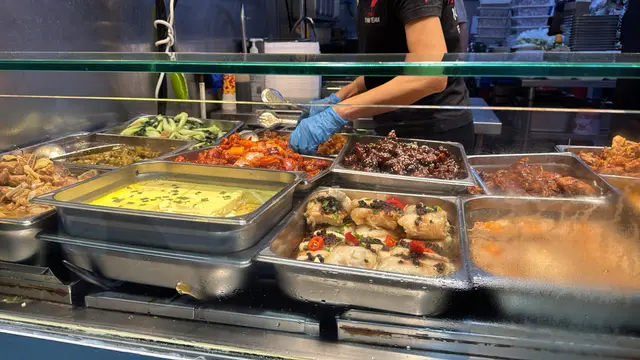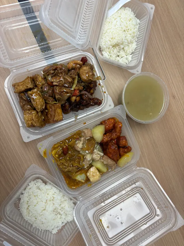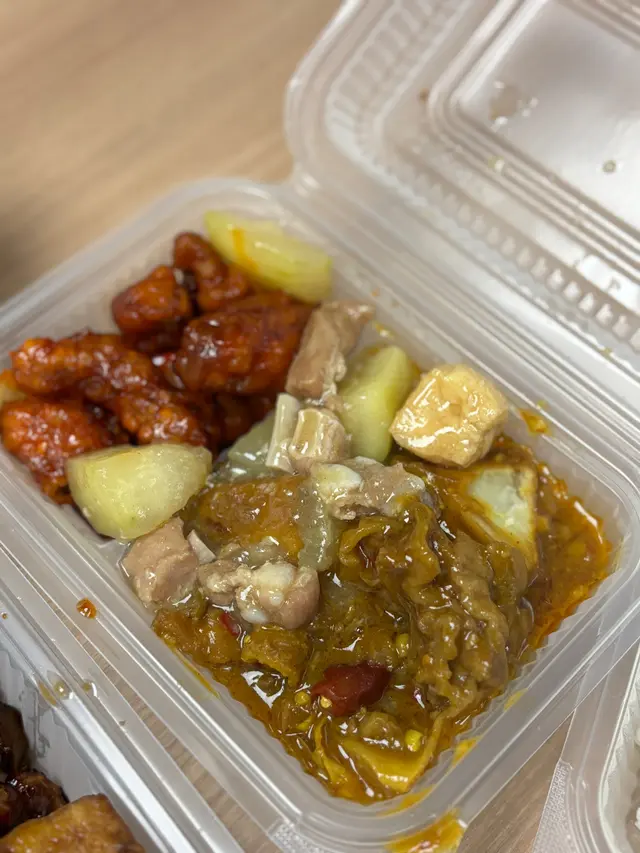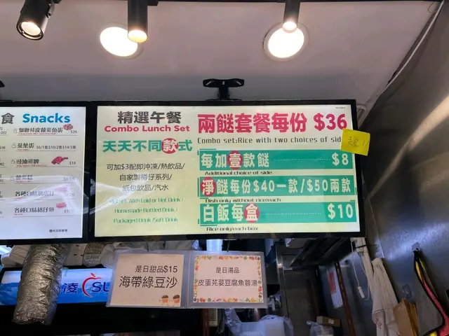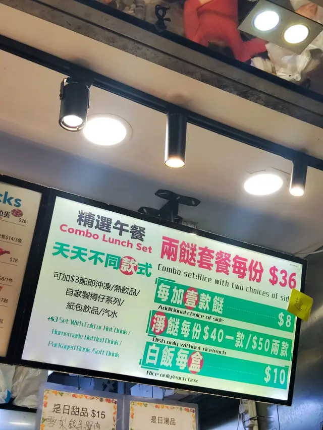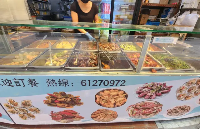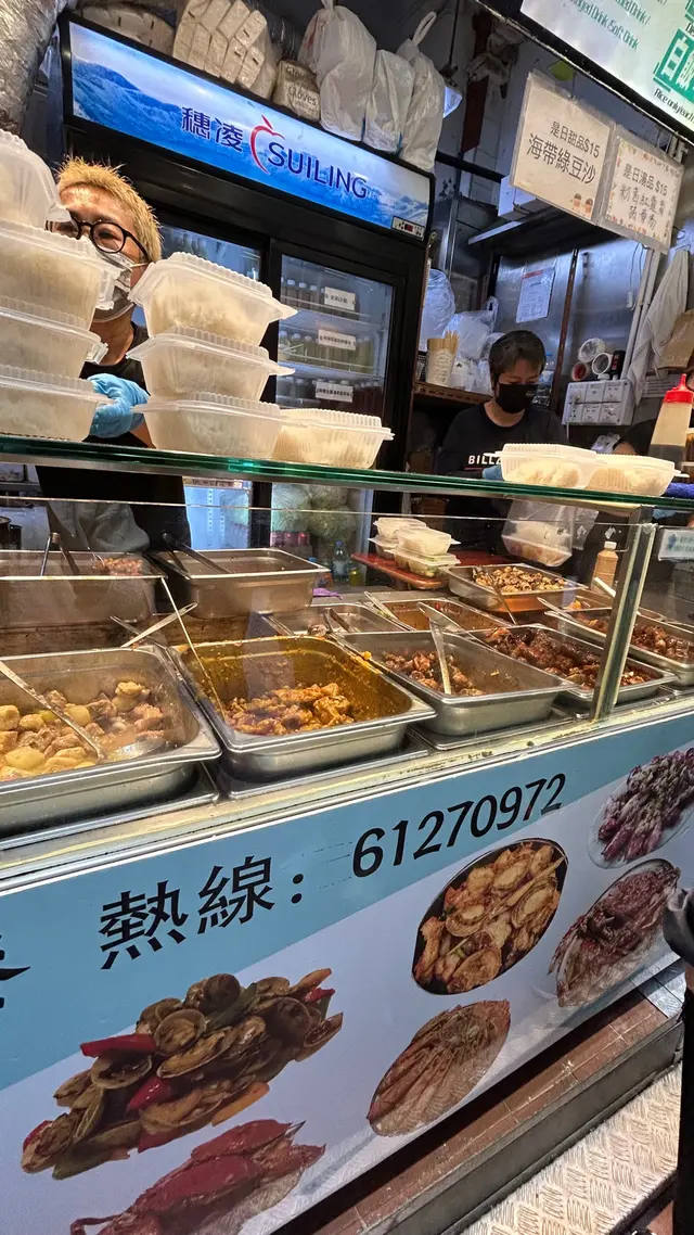 今日係附近整完回鄉證,見到呢間兩餸飯,唔想煮飯嘅我決定買幾個餸番屋企,自己再煲白飯。見到晚市5點後可以加$5可配樽仔飲品或任何飲品,自家制無糖蜂蜜鮮檸檬水同無糖金羅漢果雪梨茶都係無添加防腐劑。呢到中上環食lunch都唔平,見到好多係附近番唔工嘅OL都排哂隊,打工仔必備食店。蒜蓉墨魚仔蒸粉絲,蒸扇貝,避風塘炒蝦非常之適合買返屋企加餸。蒸水蛋入口滑嘟嘟;萵筍炒牛肉,萵筍非常爽脆,牛肉嫩滑。蠔油冬菇豆腐冬菇炆得非常之林,好入味。薯仔咖喱雞雞肉嫩滑,薯仔粉嫩,咖喱送飯一流。芋頭炆排骨份量好多,芋頭軟林。碗仔翅好足料,入口順滑。薑汁蕃薯糖水天氣凍凍地,飲完成身暖笠笠,蕃薯香甜軟林。…查看更多