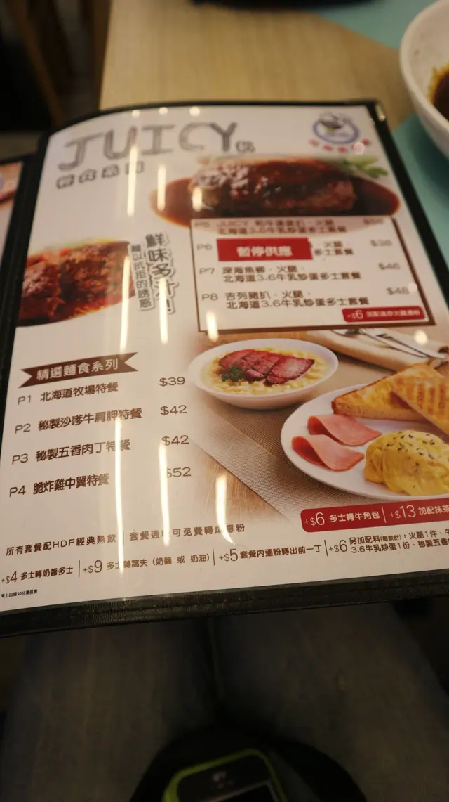放假習慣起柴灣食早餐都不外乎係食太興,食到有d悶,決定轉場去杏花邨,試下北海道牧場既滑蛋,記得n 年前食過一次係覺得好正。平時黎杏花食晚飯其實人流都唔係好多,相比之下早餐多好多人。找左個位之後,餐牌都無,枱面水漬又無人抹,其實我都唔知究竟係自己出去落單,定係等人黎落。。所以我都係自己出去落算。。。 眼見隔離枱想叫野食,職員又視而不見,嬲嬲豬離場🐷不過其實又鄧個職員慘,一個人又要落單,又要拎餐,又要抹枱,仲要沖埋野飲,而且中年姨姨行動反應唔太靈活,都要體諒一下,唯有保持耐性冷靜下💀✨相比下野食速度都算叫快番d, 不過牛油多士轉左方包,連牛油都唔比我🙄,個麵包皮超硬。✨牛乳炒蛋賣相一般,食落雖然好過快餐店,不過滑度不及太興,雖有蛋漿但略帶乾身,無太興咁嫩滑流心感覺。✨火腿通粉: 啖湯超正,好濃既雞湯味,早餐黎講係覺得最好味既湯底。通粉彈口,如果係火腿絲會更加好。✨最近腸胃都嘛嘛,食左一半就肚痛,暫時柯左3次。。。唔知係咪個湯太重料。總括黎講火腿通好食,不過我應該就唔會突登搭車再入黎食,都係食番太興算~~…查看更多