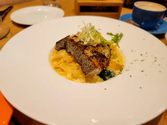 鹽煎比見魚柳伴海膽醬明太子忌廉汁意粉