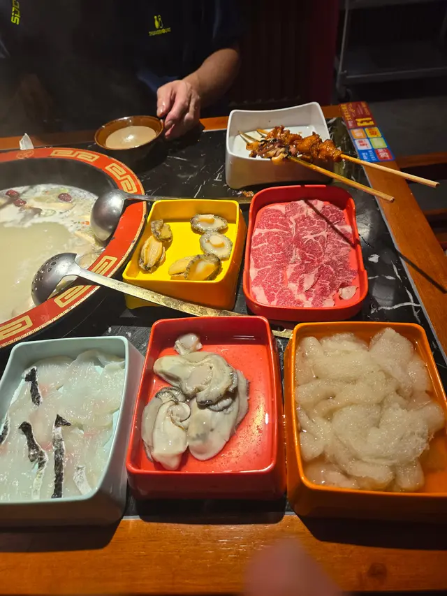 北角其實隱藏咗一間😋激抵食嘅海鮮火鍋放題餐廳🍲,係朋友仔住北角帶我來嘅。呢間北角碼頭海鮮火鍋放題,💪以即撈活海鮮同埋重慶火鍋作招徠,每位$298💰就可以肆意享受2小時任食新鮮海鮮,十分之抵食😍,而且佢哋仲開到零晨三點🕒添。一踏入餐廳,迎面係中國🏯宮廷風格嘅古色古香設計,店內空間相當寬敞,👍座位舒適,完全唔會感到擁擠,非常適合公司聚會🎉、朋友聚餐或者家庭團聚。最特別係💁♀️店員嘅貼心服務😊,佢哋着重有感情又有溫度嘅招呼,唔單止勤快收碟🍽️,仲會主動加湯🫖。火鍋湯底我哋點咗🥰招牌花膠雞湯鍋底🍲,湯底金黃甘香💛,花膠嘅鮮香結合雞湯嘅濃郁,再加上蟲草花同埋精選枸杞⭐、大棗嘅配襯,簡直係完美組合✨。自撈海鮮區💪擺滿咗鮮活嘅海鮮🌊,唔少係老闆親自每日喺北角碼頭👨⚖️親身挑選嚟嘅靚貨💎。大頭蝦紮紮跳🦐,身型肥大又飽滿,蝦肉彈牙爽口,一啖食落去鮮甜多汁🤤,完全係海鮮控嘅最愛❤️。三點蟹青活亂竄🦀,蟹殼光澤亮麗✨,隻隻都好生猛,而且都幾多膏🤩。巨型帶子肉質嫩滑,🥢簡單一煮就已經好鮮甜,原汁原味嘅鮮香令人回味無窮😋。鮮活鮑魚更係放題裡面嘅珍品💎,肉質彈牙有嚼勁,👏每一隻都係咁生猛。牛肉方面🥩,日本和牛油花均勻分佈✨,入口即化,涮一下🥢就即刻變成粉紅色,香氣撲鼻🤤。美國安格斯肩胛肥牛肉質鮮嫩🇺🇸,脂肪分佈恰到好處,煮熟後更顯鮮香。🐂美國牛板腱都好鮮嫩💪,加上中間嘅嫩根,層次豐富。仲有爽脆彈牙嘅海螺片🐚,涮幾秒鐘就食得😆,絕對係火鍋嘅靈魂配角👍。豬黃喉入口爽脆✨,層次豐富又好味😋。蠔大大隻肥美鮮甜🦪,煮完仲會釋放出海鮮嘅天然鮮香🌊。精品腰花更係又香又爽又滑😍,味道濃郁💛。自助區💪有多款火鍋配料任君選擇,😎丸類選擇豐富,貢丸、蝦丸、🐟魚丸、蟹卵丸等等,每一款都幾有質素,蔬菜都新鮮翠綠🥬,應有盡有。川式小食亦幾有驚喜🎊,有串燒🔥有雞翼🍗仲有焗蠔🦪添。飲品亦幾多元化🥤,而且有啤酒🍺、椰青水等任飲,滾熱嘅火鍋♨️配凍飲真係絕配。甜點方面,有自助🧊冰粉任食,夠冰❄️、夠滑✨、夠清涼🤤。雪糕柜裡擺滿咗多款🍨雪糕雪條,紅豆🔴、芒果🥭、朱古力🍫、牛奶等口味齊全🤩,完美為今餐畫上句號。佢哋老細見到我📸影相,話如果啲人見我出post🌐跟住嚟嘅話可以俾九折🎁,不過唔知做到幾時😆,大家可以問下。…Read More