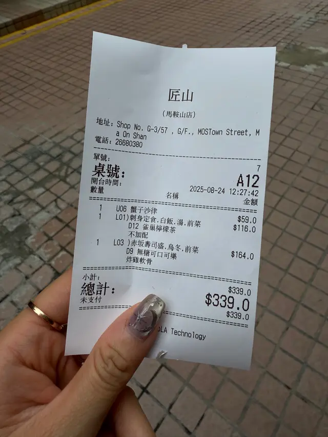 匠山 (马鞍山) 网上订位即赚Rice Dollars 网址: https://s.openrice.com/QrLS0hxy5W0 地址: 香港馬鞍山鞍誠街8號MOSTown Street新港城中心大街(3期)地下G-3/57號舖 电话: +852 26680380