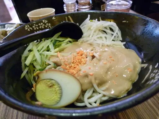 要到大角咀辦點事,一個人先要找個落腳地嗱嗱臨快吃份午餐。位於大政街的這一間水餃店,是區內其中的一個好選擇....只吃餃好像有些不夠飽,店內除餃子以外還供應麵食。看看牆上寫著的推介,有一道叫鮑魚芝麻醬撈麵的,吸引我的當不是那罐頭素鮑片而是一向我鐘情的芝麻撈....逢吃這一類的乾撈麵自己必會選冷食的。在天氣仍熱的底下,還是有一種透心涼的感覺....很可惜的,今天在此遇到的白身幼麵條的彈牙度是有所不足。就算和芝麻醬拌勻來食也是不足以彌補這個缺點;鮑片煙煙韌韌的味道是一如所料的和普通罐裝鮑片無甚大分別;青瓜及芽菜的份量蠻多,對增添整碗麵的清爽度是提昇了不少....此時喝一囗雪得冰而又味酸酸的山楂茶,喉頭就更清涼如沐春風一般....既然選吃了一道冷麵的話餃子的做法就轉成煎的,算是多了些變化。餃子外皮呈金黃煞是好看,皮是脆口的而出奇地非油;餡內的韭菜量比肉多,食落無渣而肉汁豐盈,的確甚有水平....單是為了這煎餃而是值得再來.....只來三五七碟不同款式餃子塞進肚內,無論是肚皮抑或心靈亦是夠滿足...…查看更多