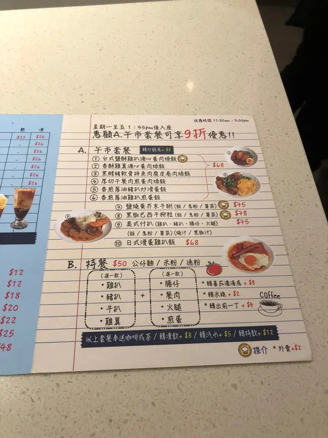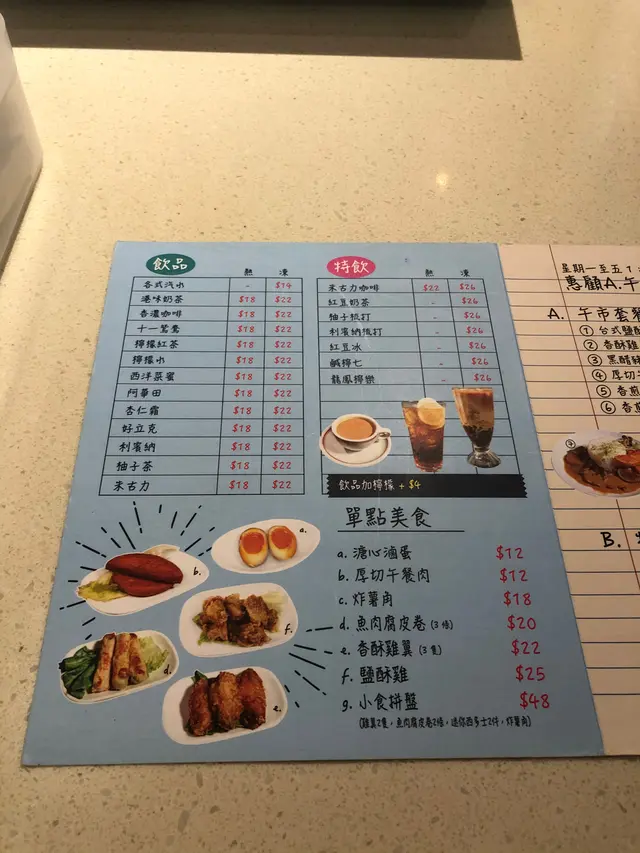 午巿套餐餐飲:▪️凍奶茶 (少冰)+HK$3奶茶香濃▪️凍紅豆奶茶 (少冰) +HK$12奶茶香濃,紅豆不會過甜,份量剛好,不過剛送來時還是冰的一坨,建議等一會再吃~ (沒有減糖,覺得甜度還算可以,可能怕甜的朋友可以選再少一點甜會更好)可以外賣自取 付款方式:現金/Payme/八達通 總括:店員效率高食物味道不錯,份量足夠,價格合理沒有服務費