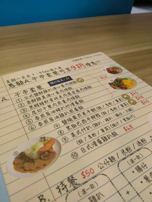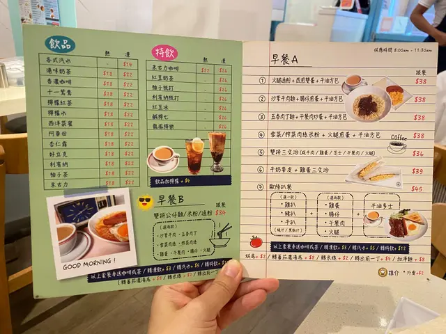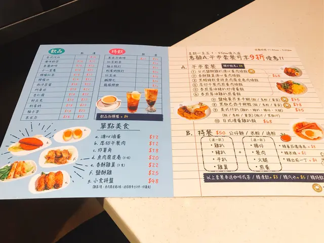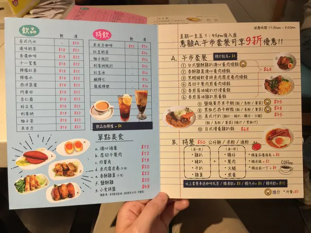 這家小小的冰室,位置不多,陸續有客人在店外等候~幸好我們來得還算早,等沒多久就有位子了~ 這店裡的餐牌是以我們讀小學時用的學生筆記本為基本設計