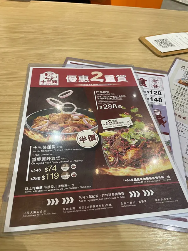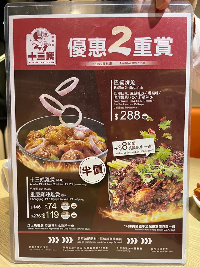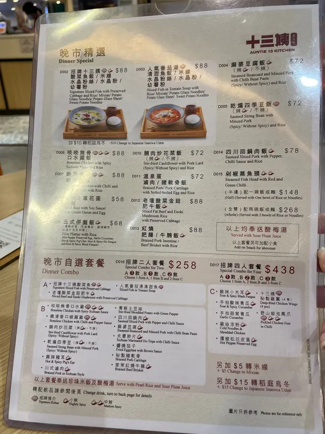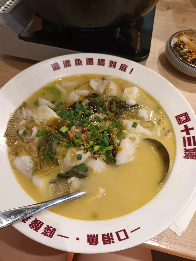 放工突然想吃酸菜魚,所以約了老公到他公司附近的十三姨酸菜魚大快朵頤。餐廳有一個兩人套餐,可謂物超所值。只需$228,便可享用以下所有美食。酸菜魚碗幾乎有兩個人頭般大,湯底味道濃郁,酸酸辣辣,帶有陣陣魚香味,令人垂涎三尺。魚肉份量非常多,肉質鮮嫩。除魚肉外,裡面還有芽菜、萵苣、薯粉等材料。其實吃完酸菜魚,已經有八成飽。套餐還包了兩個白飯,亦可加錢轉米線或烏冬。口水雞令人最欣賞的是雞肉已去骨,吃的時候啖啖肉,讓人滿足。口水汁味道濃郁,辣度剛剛好,雞肉香滑入味。另外亦配有青瓜及花生。秘製雞翼共有四隻,每一隻都漲卜卜的。皮炸得酥脆,肉質香嫩,辣椒粉十分香口,一試難忘。雞絲涼粉第一次吃這涼粉,十分特別,跟辣汁很搭。職員說這是四川特色小菜,亦有清熱作用,是他們特製的,因此不是很多地方可以吃到。柚子梳打(特飲,另加$14)冷泡玫瑰茉莉茶(特飲,另加$8)…查看更多