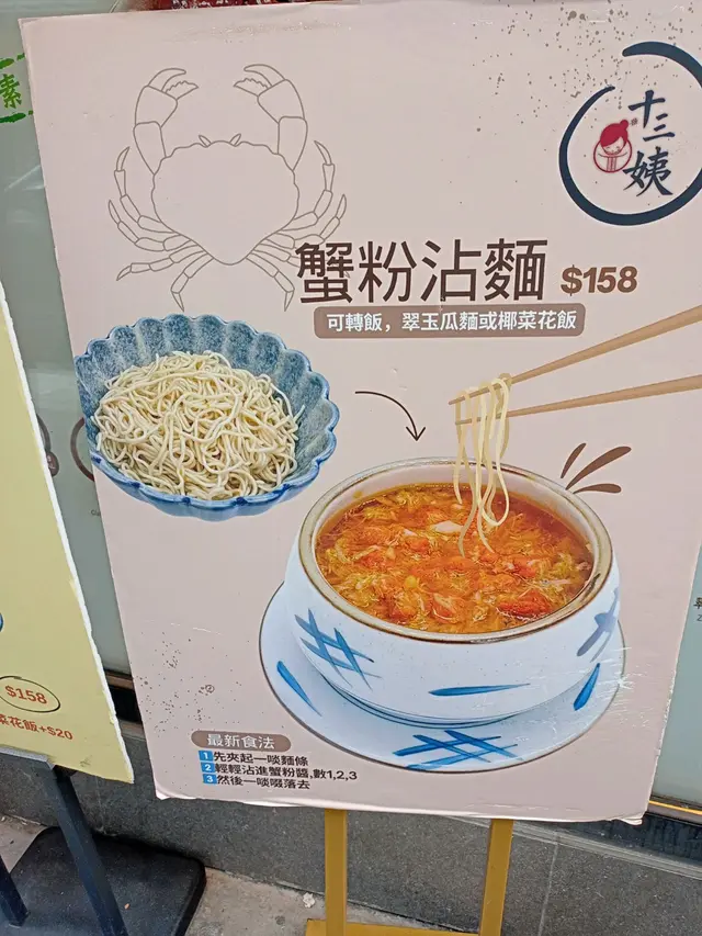 「十三姨」係一間新派港式餐廳🇭🇰菜式有唔同地方菜系嘅影子❤️‍🔥日式嘅雞叉雞 溏心蛋 拉麵湯底上海嘅陽春麵台灣嘅醬油膏印尼蝦片做前茶菜東南亞風味嘅辣椒醬🌶️西式嘅鵝肝料理融合曬香港人鍾意食嘅菜系所以食落有好多熟悉嘅風味😙😙💦「大三元」灸燒手撕雞伴雞油飯+灸燒雞叉燒+溏心蛋用大三元三隻字縮短呢串咁長嘅名😂😂手撕雞同溏心蛋都係清淡路線 無咩調味 餐廳推薦嘅食法係再係面頭淋上撈飯豉油🔥撈飯豉油係半透明嘅甜豉油我覺得加咗豉油碗飯都係欠缺一個靈魂味道差少少🤌🏻🤌🏻🤌🏻「十三么」其實係「大三元」嘅麵version!廚房會用鐵鍋熱辣辣上菜 熱氣騰騰🔥🔥雖然係同一堆配料 但係麵有湯底加持 更加好食🍜除咗同樣有灸燒手撕雞+灸燒雞叉燒+溏心蛋仲有芽菜同腸粉🙀🙀湯底飲落非常C服 係好清澈濃厚嘅雞湯店家建議可以加檸檬擠汁 再加湯麵嘅醬油口感好豐富 配搭新穎仲正係呢碗嘢仲要好味得嚟唔肥!💯Keep fit Gym友都得😆既然講到咁好 點解我話唔會做回頭客呢因為啲位實在太逼 仲逼對面澳牛檯面逼到連餐具都擺唔到(本身想食澳牛 係想坐好啲先搵其他餐廳🤣」佐敦鋪頭逼得嚟仲要無咩冷氣🥵🥵🥵熱過係泰國街邊無冷氣食嘢🇹🇭🙏🏼🙏🏼 一到食麵一到流汗 熱到成身濕曬埋單前比我見到侍應嘅工衣仲要寫「坐逼啲 溫馨啲」🙃幾好食都假 無冷氣真係搞唔掂😇或者我冬天再個時再嚟幫襯🥲🥲🥲查看更多