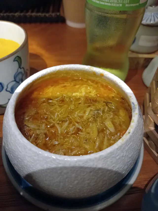 下午喺佐敦揾飯食,行行吓見到放喺門口張蟹皇麵相相當吸引,於是就決定走入去試試。雖然接近下午一時,等了大若五分鐘就有位。店子坐得很劑迫,店員安排好一個入面最後排的兩人搭檯位比我,一坐低就有七彩蝦片供應,這個有點驚喜,而蝦片脆口新鮮。等咗大若7至10分鐘左右,店員好快就端來蟹皇麵,雖然邪惡,蟹粉面前,膽固醇呢家嘢暫時拋諸腦後先,我成碗蟹皇續啲續啲續啲倒入麵到撈勻。蟹粉相當足料,蟹肉蟹羔鮮甜美味,帶微酸嘅湯好滋潤。總括呢餐性價比高,我揾日會返嚟呢間再encore。查看更多