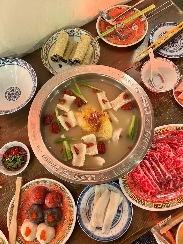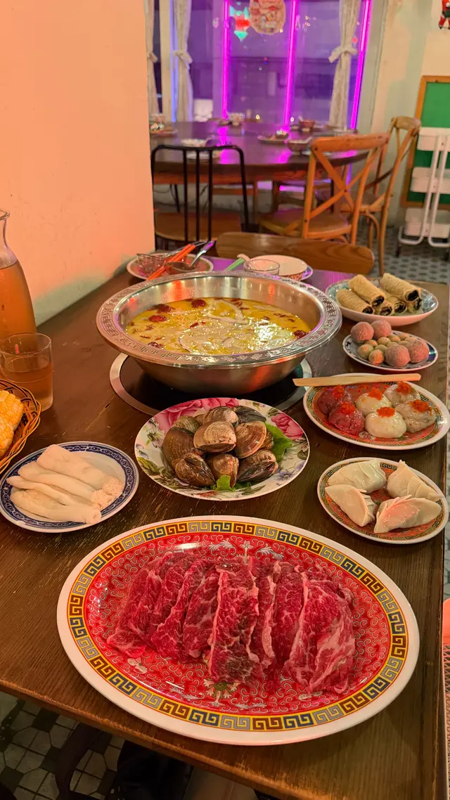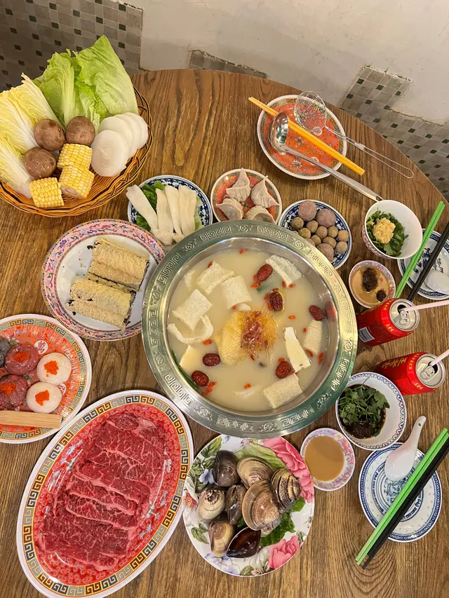 銅鑼灣懷舊火鍋冬天到了,又是火鍋的季節,網上見到呢間餐廳有充滿懷舊香港90年代特色的打卡火鍋,門面的餐牌色彩繽紛非常吸引,平日晚上非常熱鬧,用餐時間兩小時。服務不錯、侍應樂於幫忙裝修以90年代舊式港式火鍋店為主,座位不多,環境非常熱鬧~提供紙巾,精選二人套餐每位$398,另收+1服務費,已包括兩罐飲品或以優惠+$15轉冬瓜茶、酸梅湯、洛神花茶一瓶,點了竹蔗茅根清甜清熱解毒湯底選了椰子燉雞湯半隻熟雞,食雞有雞味,雞肉嫩滑,還有充滿椰子的香氣。湯底很濃郁,可以先喝湯,再火鍋大刀手切本地牛頸脊肥瘦適中,牛味濃郁十下三寶滑墨魚滑、蝦滑肥美大沙白超大隻蟹肉蟹粉餃x4皮薄多餡,小心燙口醬爆瀨尿牛丸小心爆漿燙口紫菜響鈴非常吸湯懷舊果皮魚蛋細細粒很可愛頂級野生竹笙大大條蔬菜拼盤有生菜娃娃菜蘿蔔粟米和菇菌新鮮爽脆服務質素:8/10環境舒適度:7/10ᶘ ᵒᴥᵒᶅ個人口味評分:7/10 …查看更多