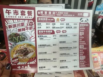 餐厅主打正宗川菜,当中以酸菜鱼和麻辣香锅最受欢迎。酸菜鱼用上二十个月云南老埕酸菜、四川酸菜及广东咸酸菜炮制。同时提供多款经典川菜。
