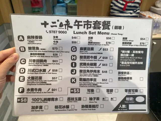 十二味 (裕民坊YM²) (观塘) 网上订位享低至7折优惠并赚Rice Dollars 网址: https://s.openrice.com/QrLS0my4500 地址: 香港观塘协和街33号裕民坊YM²3楼308号铺 电话: +852 97879060