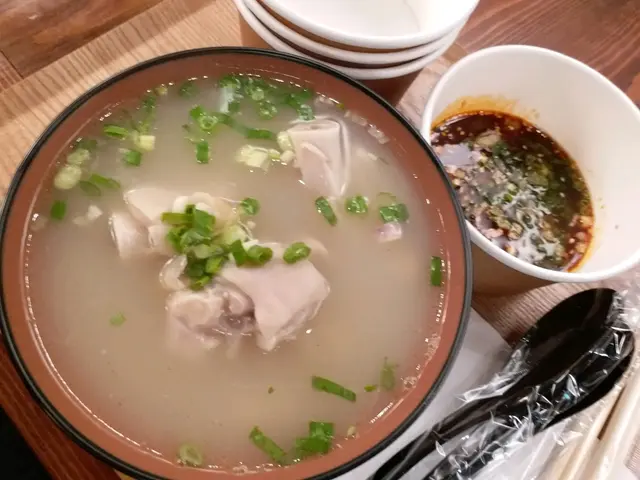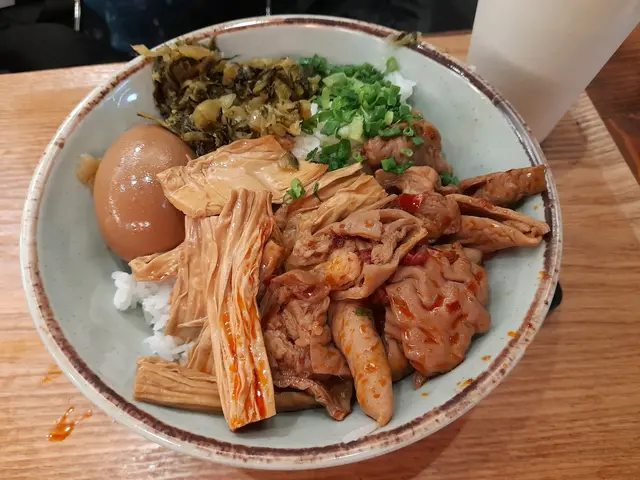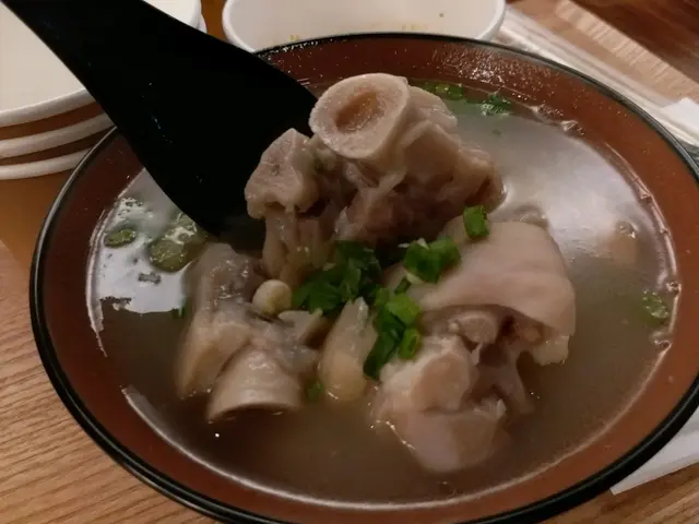 前日(4-5-2025 Sun)晏晝同老公落荃灣食晏,去邊喥食?佢話蹄花湯,話𠲖o家有飯食。啊,咁好啦。我哋嚟到都full full地,我哋喺出面等同睇menu,見到選擇少咗好多,我就鎖定要$38.00嘅豬頸肉蓋飯,老公要$38.00嘅紅燒豬腸蓋飯,我哋再要一個$35.00嘅淨蹄花湯。店員自動端上兩杯凍綠茶,呢個味道淡甘嘅。冇耐,所有食物都到齊,每碗蓋飯都有一隻滷水蛋同支竹,睇見我嗰碗豬頸肉唔似平時食到嘅爽彈豬頸肉,食落,似豬腩多啲,佢好夠腍又唔係柴皮,而且入味,唔錯。滷水蛋味道同口感都正常,支竹味道亦夠濃。老公嘅紅燒豬腸呢,加咗辣椒,豬腸乾淨冇異味,唔錯。淨蹄花湯嘅豬手都好腍,味道清淡舒服,蘸佢嘅汁好香唔辣,好味。今次冇上次咁多選擇,慶幸我哋舊年有食過(上次食評係2024年1月11日刊登嘅呢篇:https://www.openrice.com/zh/hongkong/review/%E5%A5%BD%E5%91%B3-e5233350)。…查看更多