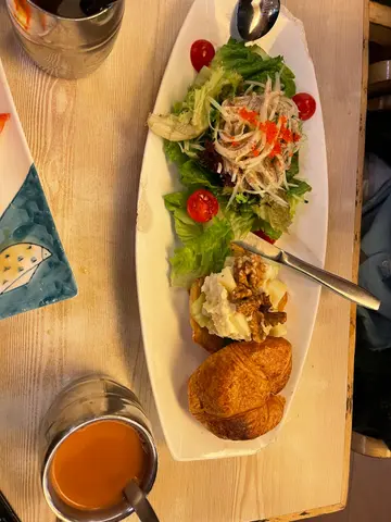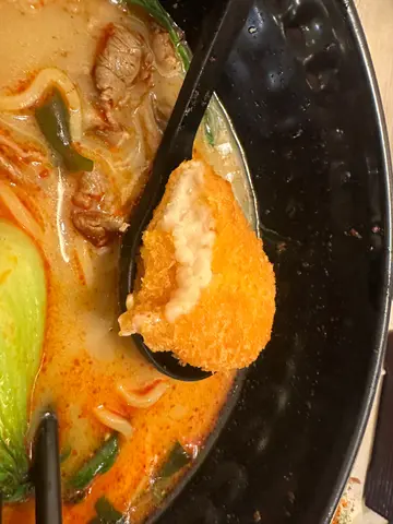 同个fd中午约左天水围见,肚仔饿经过呢间餐厅医下肚,我钟意食拉面,就嗌左客麻辣风牛肉汤拉面,正吖~😋个拉面汤底好有牛肉汤味,浓得黎又香又辣,上面辣油都落唔少几过瘾。佢个忌廉热辣辣上黎架,香香脆脆,忌廉馅都走晒出黎,突登影埋出黎🤪餐厅个七味软壳蟹反卷真系大满足,一啖一只又唔使吐骨,蟹籽都好多,只蟹啖啖都系肉,我朋友另外嗌多只烧鱿鱼都几入味,待应攞上黎个阵香味四溢,成间餐厅都闻到。基本上我同朋友都系光晒盘,正吖😉