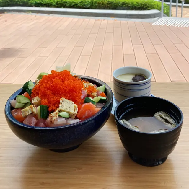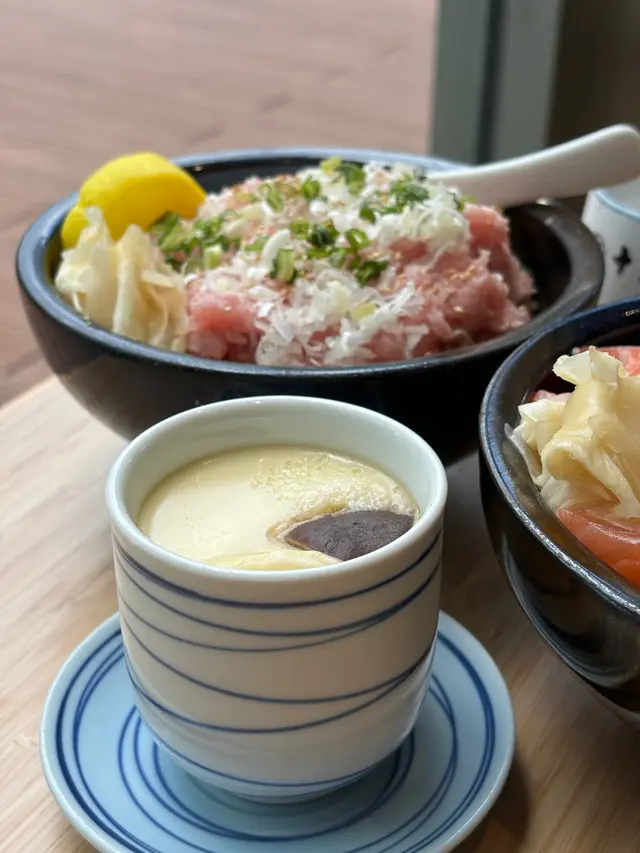 好少何食日本嘢食得滿足到咁,加咗個$38赤蝦刺身同埋加多一份帶子,仲有$48嘅墨魚🦑條狀 全部都好正,朋友想食串燒不過冇乜選擇,所以嗌咗個明太子燒雞翼,上枱雖然比想像中細 不過都幾好味 不過食雞翼就麻煩啲,我都係最後要落手雞翼好細隻嘅仲有佢個蒸蛋都零舍好味,唔係話好多料,不過呢 就好強嘅蛋味,完全好似有少少去咗日本咁 面麵豉湯都好味啲