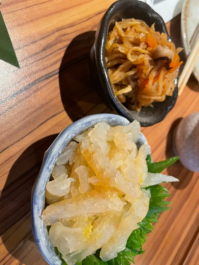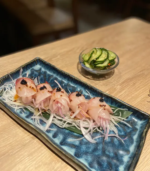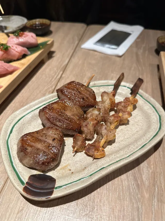 今個月同老公慶祝結婚週年🎎,最後揀左呢間係土瓜灣嘅車站居酒屋🚋🚋,門口有個好適合打卡嘅日本車站,一入到去比頭頂一串日本燈籠🏮吸引住,當下以為去左日本咁,我哋揀左Bar枱坐,望住師傅忙碌咁整食物好治療😍👍🏻👍🏻特選刺身盛入面有7款刺身,大拖羅、油甘魚、牡丹蝦、鯛魚、帆立貝、三文魚、赤身,每款刺身都好鮮甜,特別係牡丹蝦好爽口,蝦膏甘香,肉身好肥美😋👍🏻👍🏻赤貝刺身師傅推介赤貝,剛剛空運✈️到港一定要試,顏色燈紅亮麗,帶有獨特嘅濃厚味道,口感外層爽脆,內裡貝肉卻又軟又嫩👍🏻👍🏻😍十戶杯一上菜就比佢賣相吸引左,金光閃閃,師傅好有心機擺盤,杯底係赤醋飯,上面有海膽同吞拿魚蓉,另外配有紫菜同滿滿一杯三文魚籽,將所有配料一口氣放入口,鮮甜味衝擊住味蕾👅,真係好好味😋,而且每𢳂一匙三文魚籽都好有儀式感,好好玩🍣🍣鮪魚壽司盛大拖羅、中拖羅、赤身各2件,都係用上赤醋飯,大拖羅經過火灸上面放左蒜汁,帶出咗大拖羅嘅鮮味👍🏻👍🏻蘋果烤鵝肝好好味,外皮燒至焦脆,入面仲保留住震下震下嘅質感,而且一咬好多汁流出。酸酸甜甜嘅蘋果片🍎同鵝肝一齊食,正好中和咗鵝肝嘅膩👍🏻👍🏻燒馬友一夜干燒後魚表面好香口,魚肉好嫩滑,配上一細碟柚子醋帶出食材鮮味,後來同師傅傾偈先知原來成個醃制過程都由佢操刀,聽到後即刻心心眼😍,唔怪之得食味同我係出面食嘅一夜干唔同👍🏻👍🏻士多啤梨豚肉卷一聽個名覺得好新奇所以叫左嚟試,佢除左豚肉片卷住士多啤梨🍓之外,仲有一碟煉奶。日本人食士多啤梨會點D煉奶食,但估唔到士多啤梨豚肉卷點煉奶又幾好食喎,佢帶出左士多啤梨嘅甜味,士多啤梨又解左豚肉嘅油膩感,幾夾👍🏻👍🏻炸池魚仔 甘香酥脆,炸皮好薄,一D都唔腥,味道好鮮,成條連骨食到,送酒一流👍🏻👍🏻燒免治雞肉棒免治雞肉棒之中,混入刴碎咗嘅雞軟骨,啖啖肉兼有咬口,口感好豐富,外層微焦香脆,內裡雞肉脆嫩多汁,沾上日本蛋汁🥚好滑👍🏻👍🏻燒雞皮燒得好脆口又有彈性,送酒一流🍺👍🏻👍🏻燒雞脖肉位於雞脖周邊嘅頸肉,一隻雞只切到少少肉,好稀有,脂肪少、充滿彈性,食落口特別Juicy👍🏻👍🏻炸舞茸整整一棵舞茸,而且炸衣薄脆,炸嘅時間啱啱好,咬落去仲有好多菇汁今次叫左3款酒 — 三諸杉純米吟釀、電照菊 金 純米大吟釀、Highball 🍶🍶三諸杉 純米吟釀 聞落好香桃同梨味,飲到尾少少酸香,好帶到魚嘅鮮味🍶🍶電照菊 金 純米大吟釀 輕盈嘅香氣,口感清爽,飲落好順滑易入口🍺🍺Highball 去日本好鐘意飲威士忌梳打,但同過往咁多間相比,佢嘅威士忌佔比多啲,濃郁啲今餐晚飯整體嚟講真係十分滿意,估唔到香港仲有間咁有誠意嘅日本居酒屋,下次一定會再去…查看更多
