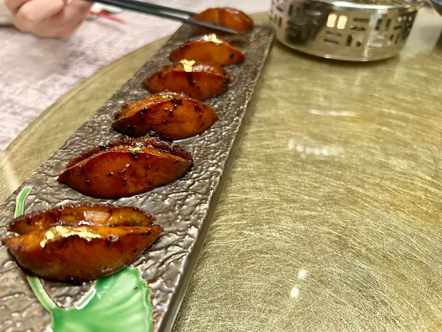古法蒸小黃魚配紫蘇麵 賣相好靚,不過份量就有啲細,得4-5片魚片。味道方面,魚片切得幾大塊,冇骨頗滑,味道比較淡。麵食唔到紫蘇嘅味道,就係普通嘅幼麵。撈埋充滿花雕酒香甜味嘅醬油,幾惹味。👌🏼香烤脆皮雞 (半隻)$198 皮整得幾脆,味道比較清淡。雞胸肉部份唔夠嫩滑,比較嚡口。🤔蟲草花浸有機採花菜 $168原本見到餐牌嘅賣相好靚,嚟到頗失望,顏色冇餐牌顯示咁色彩繽紛, 圖文不符。味道方面,湯汁係瑤柱水嘅味道,但因為椰菜花球本身冇咩味,唔係好襯呢一種非常清淡嘅湯汁嘅整法,導致成碟餸非常平淡。👌🏼爆汁和牛燒餅 $138味道符合預期,但冇咩爆汁。👌🏼黑松露小籠包 黑松露味道未算十分香濃,不過肉汁都充足。甜品👌🏼椰汁燉蛋白小湯圓 味道符合預期,但蛋白唔多滑。
