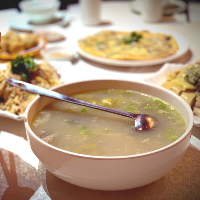 本人一向是牛丸爱者,所以经常会到不同的餐厅尝试,绵丽的牛丸是我吃过最出色的。早前朋友介绍十里潮香给我,告诉我他们的牛丸也十分不错,今朝经过铜锣湾,忽然醒起,决定上去试一试。点了一个卤水鹅拼腩肉套餐,配胡椒猪肚汤,当然不少得牛丸汤卤水鹅肉质颇粗糙,而且香味不够,但卤水咸味及色水正常,整体质素普普通通胡椒猪肚汤有意惊喜,胡椒辣味充足,汤头香甜,猪肚爽滑,酸菜不会过咸,味道适中,猪肚酸菜份量适中,不错最后牛丸压轴出埸,一咬下去,即见肉汁喷出,肉质爽口弹牙,肉丸一入囗,就尝到浓浓的油香,咀嚼下,牛肉味亦慢慢渗出,仔细看看肉丸中的内部纹理,见到一粒粒的脂肪及根粒与牛肉混在一起,味道囗感十分出色,不下于我最爱的绵丽牛丸,伴随著牛丸的香芹炸蒜亦能提升了它的香味。推荐!!!!