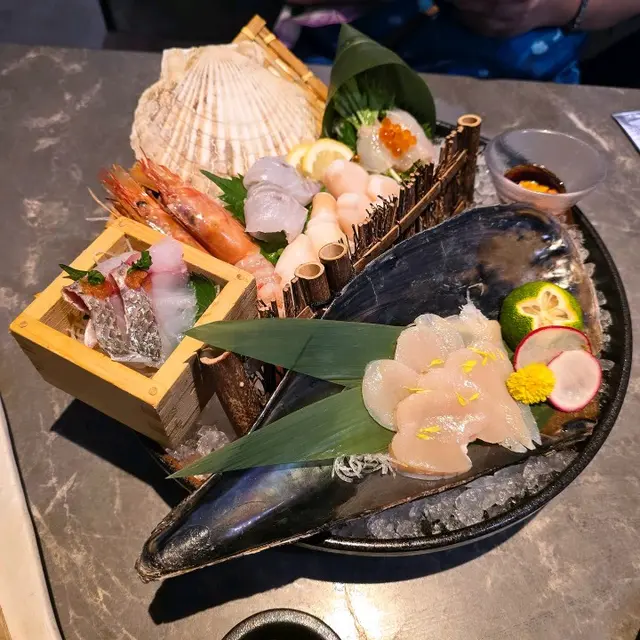 時令魚鮮七點刺身盛 (平貝,平目,螺片, 鱸魚,鯛魚,活帆立貝,赤海蝦)