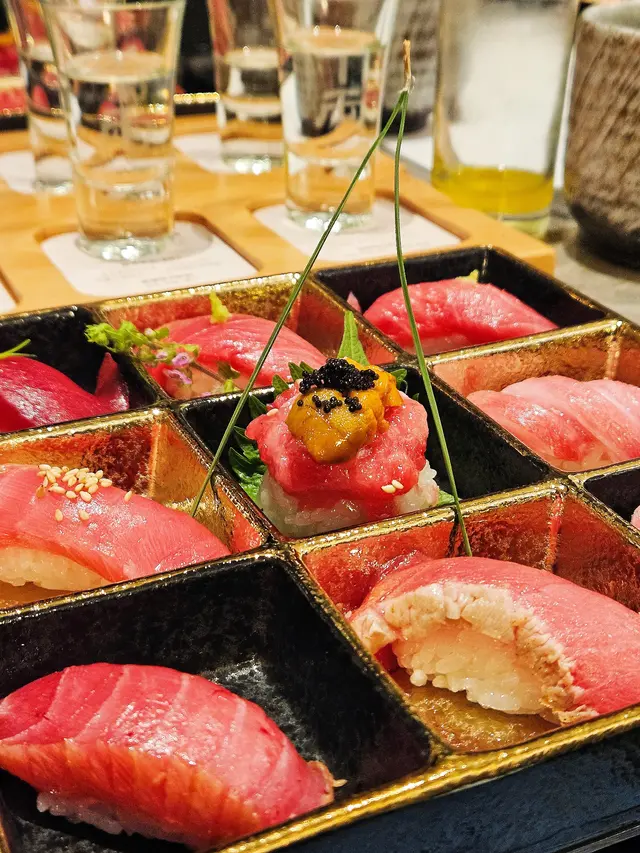 来香港想吃日料就🐎住这家高质餐厅❕吞拿鱼品质超好(谁吃谁知道[色色R]🍱吞拿鱼寿司九格(必点⭐️有赤身、鱼腩、wakaremi,一次品尝多个部位,口感不一,但都超级鲜!🦪广岛蚝朴叶烧生蚝炖煮入味,酱汁浓郁,还有搭配了荷兰豆、蘑菇🥩A4黑毛和牛蒸笼(第一次吃蒸的和牛,很嫩[哇R]🍤特上天妇罗拼盘又大又弹牙的虾仁裹着一层酥酥脆脆的面衣,蘸一点酱油就非常鲜香,红薯也很软糯!🍸浓度不同的清酒(用来搭配不同菜肴🍈日本皇冠蜜瓜芭菲(一定要点这个甜品!蜜瓜又甜又多汁,冰淇淋球和底下的麦片、蓝莓,奶油,蓝莓酱、晶球层层叠加,口感超级丰富…查看更多
