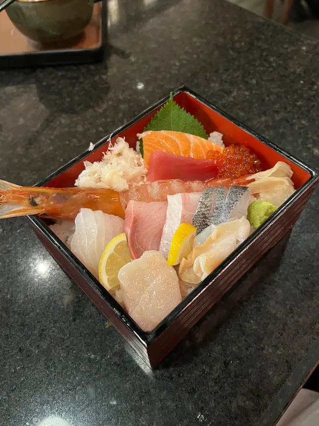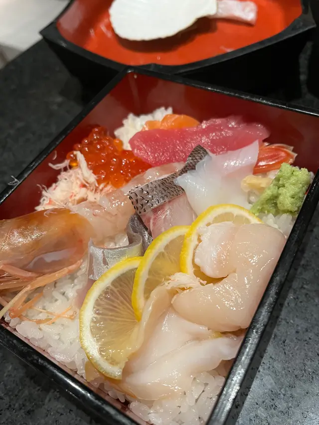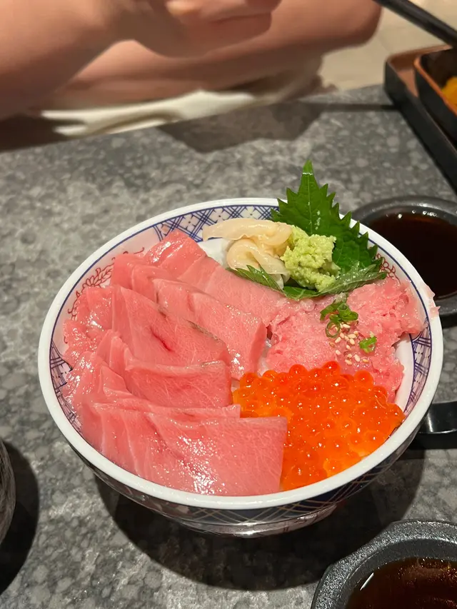 直送魚鮮角切飯定食 - 三文魚和吞拿魚肉質新鮮,色澤光亮,油甘魚更富滑溜之感,酸薑微辣,開開胃口。方形飯碗,看起來份量少,其實內裏藏起很多珍珠米飯,大飽口福!【推介之選】❤❤❤