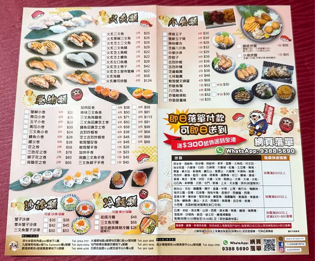大和站附近的一間壽司小店,舖頭不算很大,都是二人座和四人座,而且其中一大主打是外送服務,滿300就可以免費送貨,配上這裡的食物價錢,性價比挺高的!極上日本時令鮮魚Omakase 12貫(328元)這個性價比不錯,一次過能吃到12款不同的魚,而且當中還有不少貴價的,如中拖羅,大拖羅,海膽,牡丹蝦,赤貝,金目鯛,深海池魚等,還有部分分不出來。整體都十分新鮮,即叫即整的!而且每款的調味都不一樣,如薑蓉,芥末,酸醋啫哩,真的有點像在吃Omakase的感覺!不過我最愛的還是大拖羅,海膽和牧丹蝦,鮮甜特別突出!大拖羅入口即化!牡丹蝦搭配上蝦膏一起吃特別甘香,肉質爽嫩!查看更多