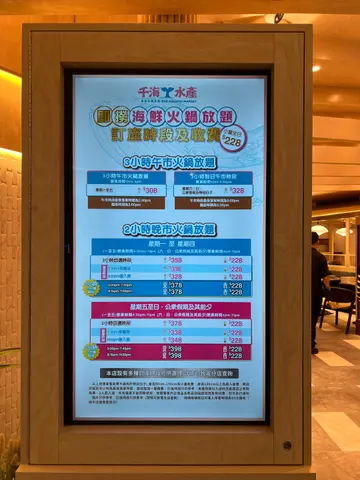 旧同事Michelle今个月生日,我哋约咗佢今晚庆祝生日,原先都系谂住选择习惯性去开的食肆,点知Michelle建议嚟呢度,我哋不妨试吓!我哋book咗晚上七点,我6:50第一个来到,点知原来依然要排队的,搭正七点接待处就放啲客人入去,由于佢哋两个迟到少少,我就影咗个QR code研究吓餐牌有乜,火锅汤底方面可以选择的有鸳鸯汤底(可惜没有列出它们的名称,见到其中一款铺满干辣椒就唔敢叫)、椰子鸡汤(点咗呢个),沙嗲锅(屋企成日整,所以唔叫),冬瓜瑶柱猪骨汤,蕃茄猪骨汤汤底,黄金花胶鸡汤汤底,胡椒猪肚汤底。首先我拎起一张环保袋质料做的口水肩,系防止食火锅𠮶阵时弹污糟自己件衫的,枱面有一樽用一个有耳仔的玻璃水樽装住嘅白色的水,原来是补充汤底的汤(什么汤底也加入这只汤补充水干),外面近比客人洗手的两个洗手盆有一架车仔放咗除咗呢啲汤之外仲有水,每次食到只手污糟或者攞咗生嘢之后惊交叉感染就喺度用泡沫枧液洗手。食客要攞枱面𠮶个不锈钢筒去海鲜档自己拣海鲜捞,有两款蚬/花甲,东风螺,蓝色的花蟹,三点蟹,大头虾,海中虾及基围虾,然后交俾海鲜档的职员交换一个号码牌,等大概8分钟之后攞号码牌去海鲜档攞返海鲜档职员帮我哋洗刷干净及斩开一半的蟹,然后加入火锅之中。喺自助食材材料盘之中可以拣嘅火锅材料好多,我好钟意鹅肠,其他有啲一般冻肉舖买到未试,但系蔬菜嘅款式比其他火锅店多两倍,好多都噏唔出个名(建议店家列出要烚的时间就Perfect了),我食咗好多菜。火锅牛肉和羊肉要另外点的,价钱包埋,不需另外付款,质素都唔错,可以点的熟食也有很多,自助餐枱的熟食也有,甜品也有,不过我个人兴趣不大。但系其实两个钟真系食唔切,除非唔讲嘢,不过都食得饱!饮品方面好多选择,只系试咗杨枝甘露和青桔仔饮品,真系好饮到飞起!不过就甜咗啲啰!因为我食饱先饮嘢,所以最后攞咗两支嘢饮走,细细支真系识谂!埋单每人$394。经过今次嘅经验,我哋第日会选择星期六日或者假期嚟食午餐,因为可以食足四个钟,可以吹埋水,今次唔讲得几多嘢;如果嚟食晚餐的,也想到一系列的策略,例如叫啲friend唔好迟到!总之,呢间嘢值得经常嚟encore!对面𠮶间Outback揾只鬼影见吓都冇,呢间就排晒长龙。…查看更多