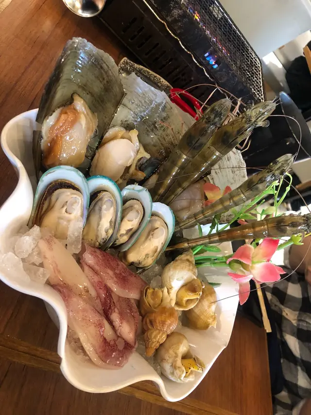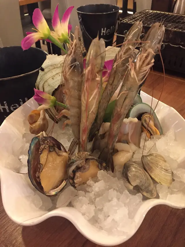 )頭盤一尼就俾左個海鮮拼盤我地燒住先,要新鮮食呀嘛!有鮑魚,海蝦,生蠔(我家姐話好好味,估吾到佢咁高質), 魷魚等等。。