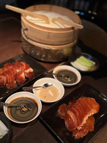这夜跟朋友饭聚选上久未捧场的餐厅品尝新推出升级招牌菜!大家一起以美食来宠坏嘴巴好快活耶。餐厅正是位于中环区银行大楼内的MOTT 32,沿著旋转楼梯走入地库便到达充斥工业风加中国传统文化融合的餐厅。这夜有幸再品尝到行政总厨李文星师傅的精彩菜式,绝对值得我叹杯酒来期待。打头阵先来客点心咸蛋鸡锅$96/4件!超级可爱的鸡蛋造型非常好打卡,满满甘香的咸蛋黄下是嫩滑鸡肉,配衬伪蛋白软熟包包吃下口感非常丰富。樟茶鸭柚子沙律$200!柚子的清香配衬惹味樟茶鸭丝已经够迷人,再加上沾满柠檬蜜糖酱的清爽沙律菜、柚子及时令杂莓和坚果,这一口沙律的味道真是惊艳到我。椒盐鲜鲍鱼仔$290!硕大的东北大连鲜鲍鱼裹上透薄炸浆吃下口感轻脆不油,厚身的鲍鱼鲜嫩软滑仅以椒盐吊出鲜味,这种烹调方式能保持外脆内软鲜味无穷。花胶螺头老鸡炖野生珍珠柑橘汤$480!清澈金黄的炖汤除了花胶、螺头及老鸡的甜之外,还带上微酸果香非常清新特别适合夏天饮用。蜜汁顶级西班牙黑毛猪叉烧$390!升级版的Presentation以木盒呈献!内里充斥薰衣草及苹果木的烟熏香气,打开一刹那大家的手机都已经预备好了!仙气随著烟熏香气幽幽渗出,此刻眼睛跟鼻子也非常享受。卖相吸引的叉烧质感松软肉味香浓,蜜汁的甜加上烟熏香令味道非常有层次感,怪不得能成为令人百吃不厌的招牌菜。这一刻侍应端来了片皮鸭的配料使出超特别的混酱技巧!于甜面酱上倾注十字图案的芝麻酱,然后以打圈式摇晃继而拉出漩涡图案,为大家带来了视觉上的小趣味。酱料表演完毕是时候品尝42天饲养北京片皮鸭配特级黑鱼子酱30g $1480!这道大家也非常喜欢的招牌菜推出了奢华的升级版,究竟于片皮鸭上还可以怎样升级真的令人非常期待。厨师精心挑选出八片最Perfect的部位,放在松软饼上再于面头缀上金箔及黑鱼子酱,全件放入口细味出甘香加咸鲜的冲击令人印象深刻。剩余的鸭肉则可以用嬷嬷皮配青瓜、京葱来品尝。陈皮怪味牛肋骨$650!焦脆香甜的外皮配散发阵阵陈皮和黑醋的香气,绝对能唤醒牛魔王狂野的味觉。桂花蜂蜜脆鳝球$350!用上新鲜的鳝鱼沾上炸浆烹至金黄,然后裹满自家调制的桂花蜜酱味道香甜惹味。姬松茸藕片百合炒芦笋$220!虽然是素菜但口感清爽之余不失香氖,清甜爽脆超级好味道我很喜欢。甜品有卖相美绝的日本酸梅奶冻配洛神花冰$180!香滑的日本酸梅奶冻配衬洛神花冰味道酸甜兼备,加上香草椰子雪糕的加持就更见优雅了。铁观音杏仁朱古力小笼包$196/4件,以小笼包造型示人有点可爱,冰冻且带浓郁果仁及茶香要讨好甜牙齿不难。全新升级菜式由即日起于香港店独家,推荐给喜欢品尝中菜又想尝新的朋友。…查看更多